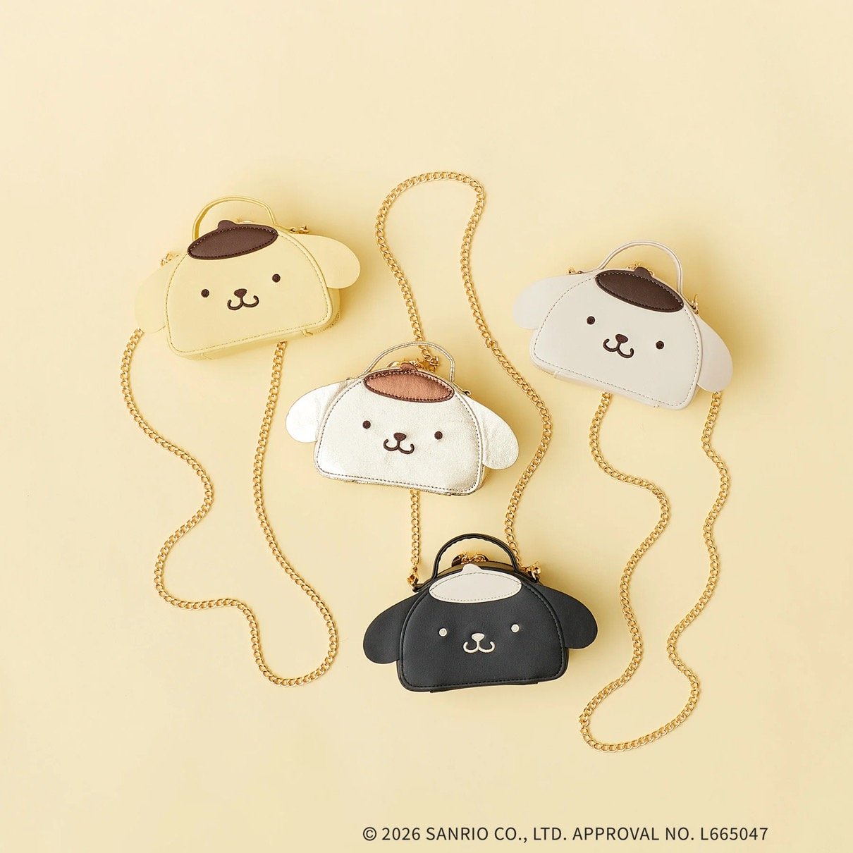 本体はファスナー開閉式で、引手部分にはポムポムプリンがデザインされたオリジナルのメタルパーツを使用。