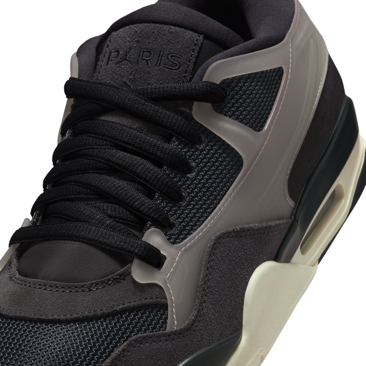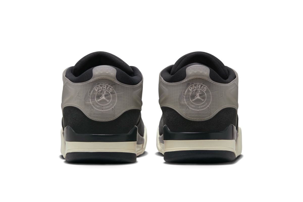 オリジナルのエアジョーダン4から受け継いだクラシックなマッドガードやソールユニットなど本質的な要素を残しながら、スタイリッシュなロートップ構造のアッパーを備えている。異素材を組み合わせたアッパーにはTPUケージをあしらい、伝統的なロゴがモデルのアイデンティティを表現している。カラーはオフノワール/パーティクルローズ/アンスラサイト/セイルで仕上げ、PSGロゴの配されたヒール部やPARISロゴのシュータン、スタジアムとサポーターのグラフィックがプリントされたインソールが特別感を演出している。