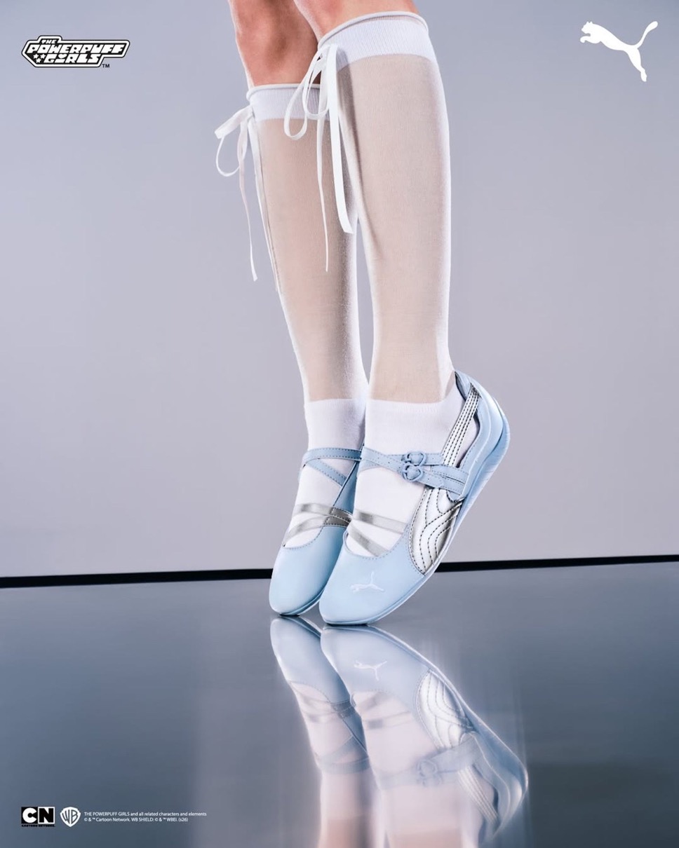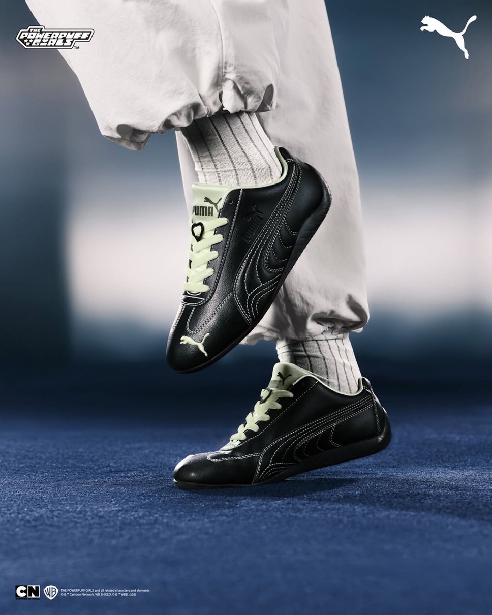 トラックレースのスピードにインスパイアされた、 プーマスピードキャット。誕生 以来20年以上にわたり、世界で支持され続け、ストリートウェアとレーシングカル チャーの象徴的なアイテムして愛されている。パワーパフガールズとの新作コラボレーションでは、バレエからインスパイアされたエレガンスさと元来のレーシングDNAを融合させたスピードキャットバレエのバブルスブルーカラーと、リボンが可愛らしいスピードキャットGOのブロッサムピンク、バターカップのブラック&グリーンで仕上げたスピードキャットがラインナップ。
