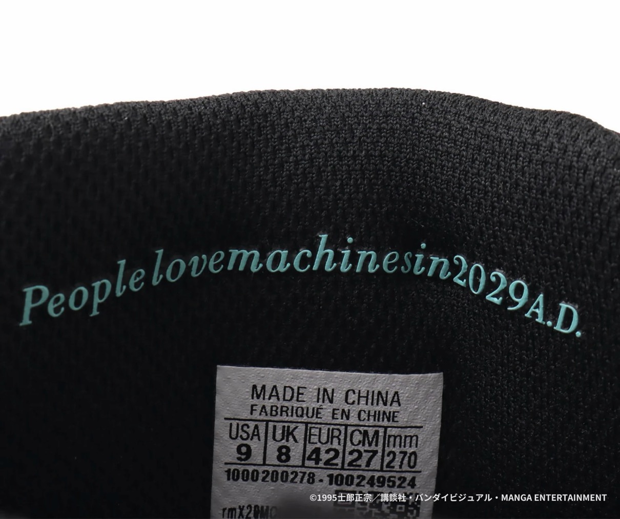 「Reebok」の“INSTAPUMP FURY”を象徴するhexalite cushioningやロゴには、「攻殻機動隊」を彷彿させるターコイズブルーで配色。シュータン裏には作品のサブタイトル「People love machines in 2029 A.D.」、かかと部分の左足には「攻殻機動隊」、右足には「GHOST IN THE SHELLE」の文字が施されており、シューズボックスまでデザインと連動した仕様となることでファン垂涎の一足が完成している。