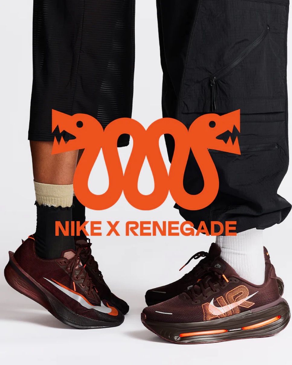 ナイキの高性能ランニングシューズ『ZoomX Vaporfly Next% 4(ズームX ヴェイパーフライ ネクスト% 4)』と『Vomero Premium(ボメロプレミアム)』に、レネゲードのランニングへの深いルーツ、ビクターのインスピレーションが融合したビジョンを見据えたコラボレーションモデルが登場。レネゲードは、抵抗と再奪還の精神のもと、これまで業界に自分たちの姿を映し出せなかったランナーたちが居場所を見つけられる場として誕生した。今回登場するコレクションは、彼らの理念を体現し、伝統、パフォーマンス、そして互いへの絆を象徴している。