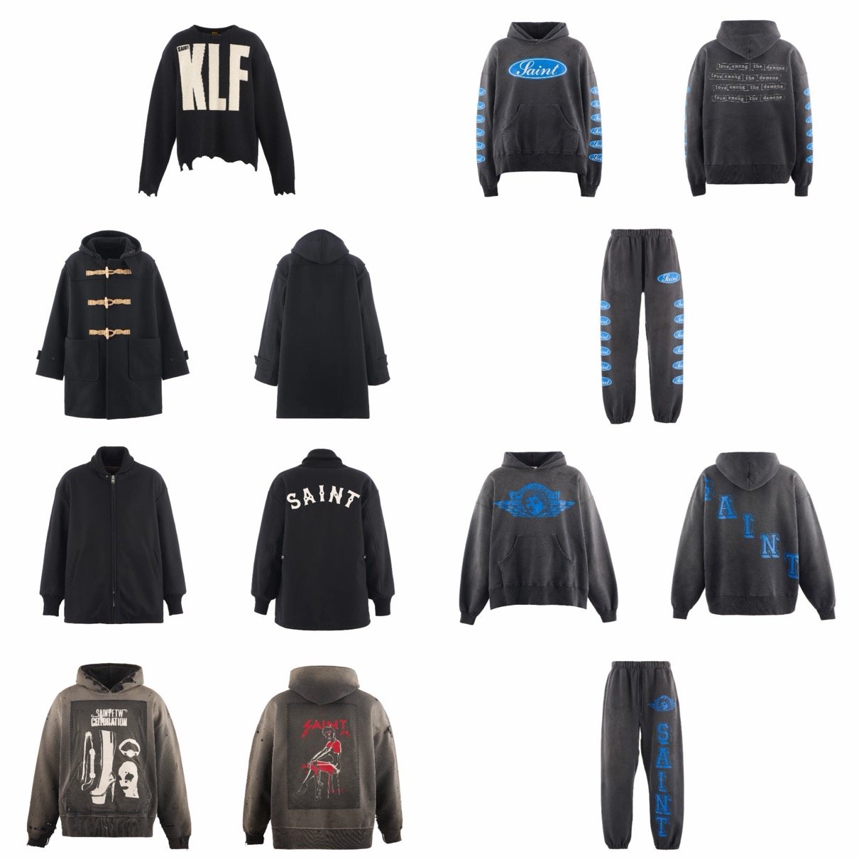 そのほか、©SAINT Mxxxxxxと英国の伝説的音楽ユニット・The KLFによるコラボレーションアイテムも発売。8月にリリースされた第1弾に続く今作では、“300年後に©SAINT Mxxxxxxが大阪ツアーを行ったら”というフィクショナルなストーリーを軸に、音楽・アート・ファッションの垣根を超えた世界観を表現。The KLFの象徴的なグラフィックやミリタリーディテールを再構築したラインナップとなっている。レギュラーアイテムには、人気のグラフィックを採用した、スウェットセットアップやブランド初登場のアウターなどが揃う。