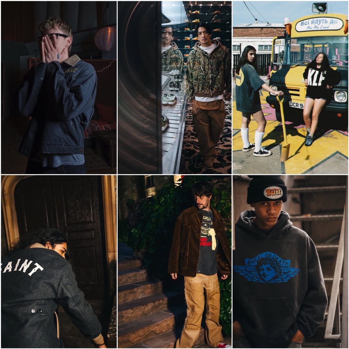 さらに、©SAINT MxxxxxxとLAを代表するスケーターブランド・BABYLON(バビロン)によるコラボレーションアイテムも発売。BABYLONのアイデンティティであるエネルギッシュなビジュアルに©SAINT Mxxxxxxならではのリアルなヴィンテージ加工を融合し、両ブランドの世界観が交差する唯一無二のアイテムが完成。ビジュアルモデルには、シドニー出身のアーティスト・The Kid LAROIを起用。