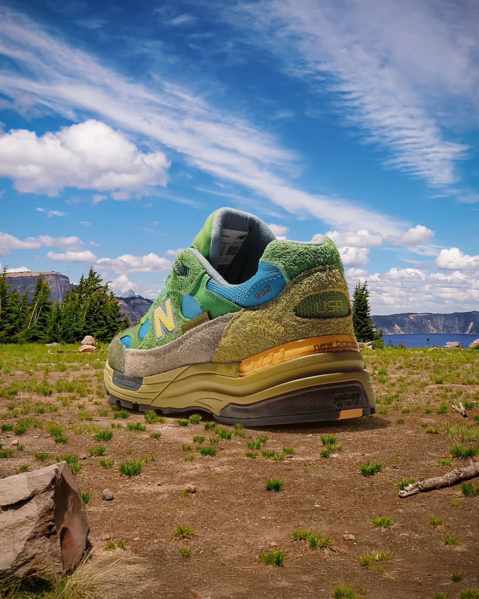 シューズデザイナー界の革命児「Salehe Bembury(サレヘ・ベンバリー)」と、アメリカ発のシューズブランド「New Balance(ニューバランス)」による新作コラボスニーカー『992 “Calm Be The Crater”』が、現地時間2026年2月12日/国内2月19日(木)より発売予定。