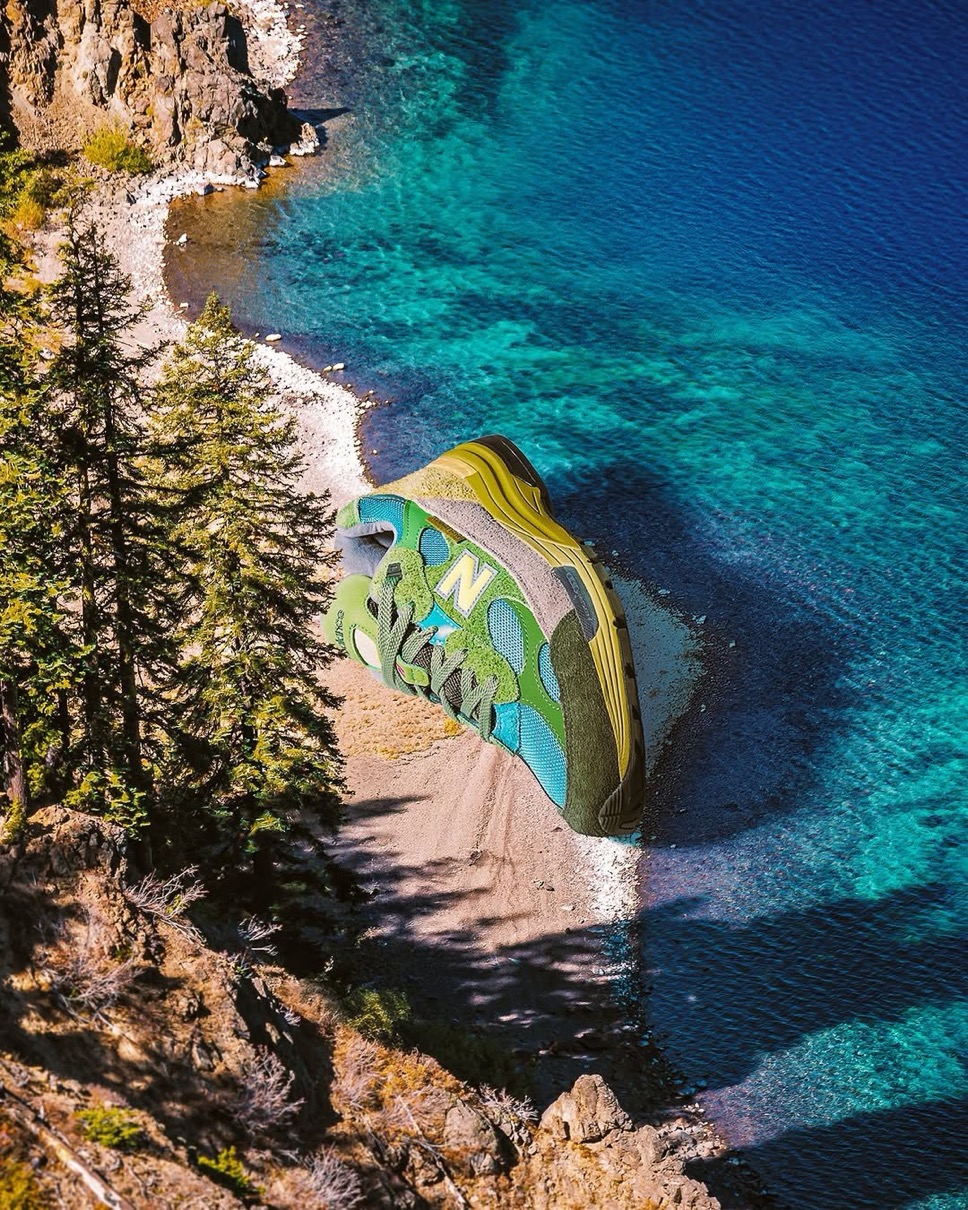 ベンバリーらしいアウトドアテイスト溢れるカラーリングが特徴的で、「Calm be the crater」というコンセプトのもと、アメリカ北西部にある氷河湖の自然景観を映し出す鮮やかなカラーからインスピレーションを得てデザイン。質感豊かなヘアリースウェードや異素材を巧みに取り入れながらコントラストを効かせた配色で仕上げ、氏の世界観を色濃く反映させたスペシャルプロダクト。森林と湖を彷彿とさせるグリーンとブルーのカラー、そして限定デザインのシューズボックスが、その静謐な景色と同じくらい唯一無二の存在感を放っている。国内販売情報の追加など、新たな情報は判明し次第随時更新予定なのでお見逃しなく。