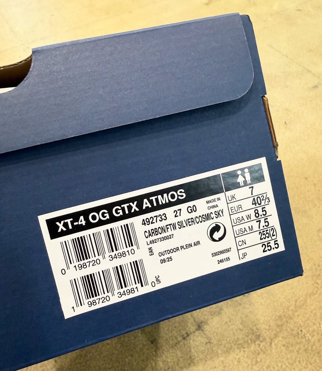 2023年に登場した XT-6 FOR ATMOS “STARS COLLIDE”から約2年半、その続編となる『XT-4 GORE-TEX “STARS COLLIDE II”』が登場。誕生以来トレイルを貫く『XT-4』は、斬新なデザインに驚くべき数の高度な技術を搭載し、あらゆる地形に対応。トレイルでも都市部でも、最大のパフォーマンスを発揮する今作は、細部に至るまでオリジナルを忠実に再現したディテール。防水透湿性素材GORE-TEX(ゴアテックス)メンブレンを備え、atmosが原宿に誕生した2000年初期、コラボレーションスニーカーに多く用いた“星”のリバイバルとコンセプトを重ねてデザイン。天体衝突をテーマに宇宙に散らばる星屑をイメージし、ネイビー&シルバーのアッパーに煌びやかな星が散りばめられた幻想的な一足へと仕上げられている。