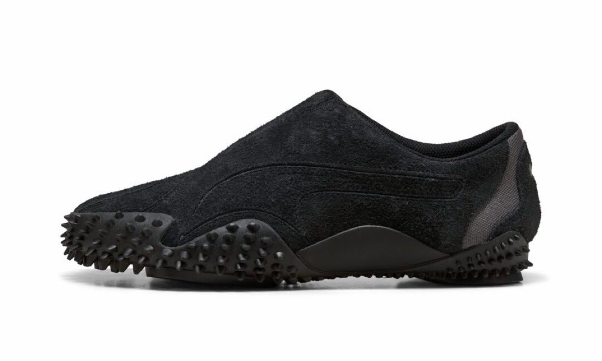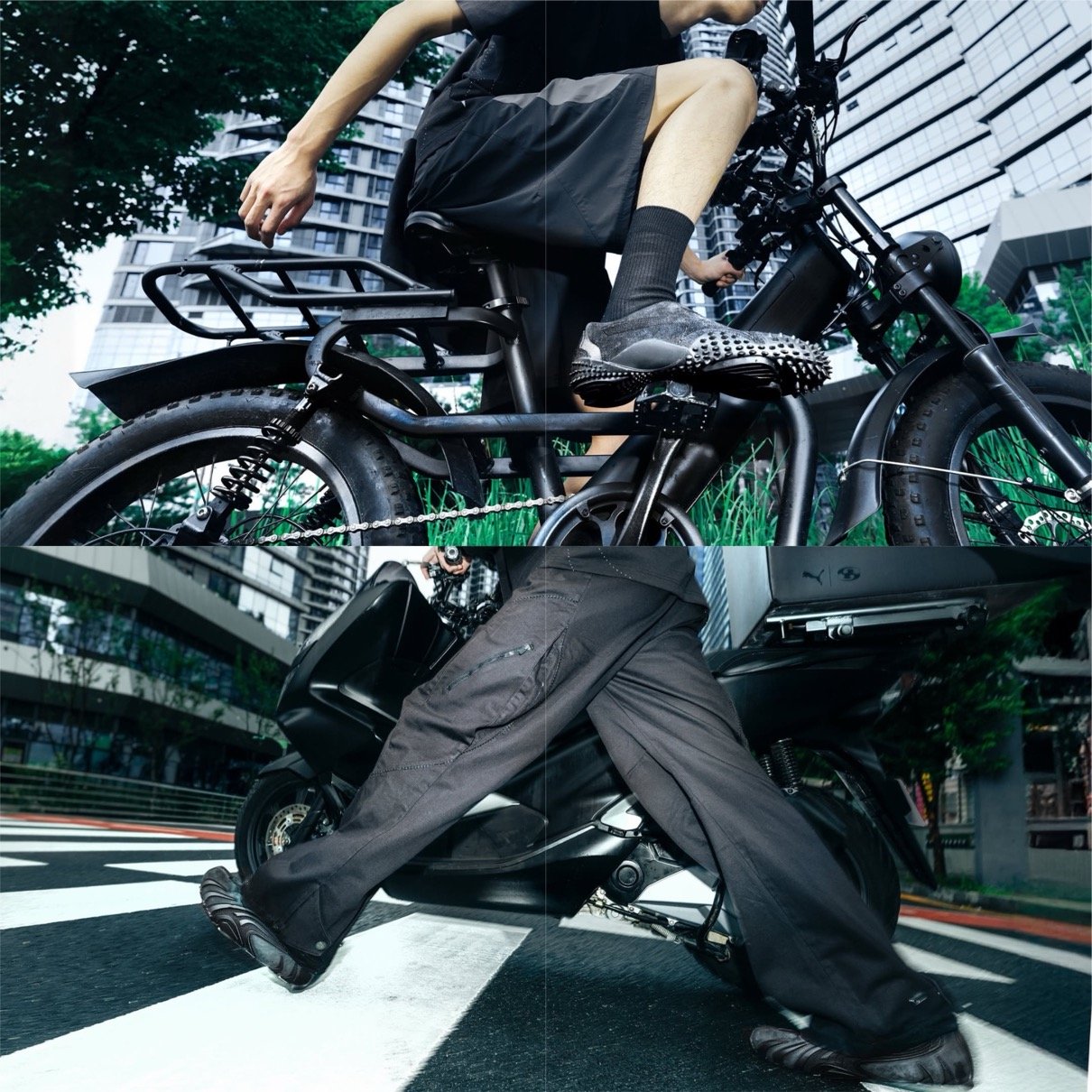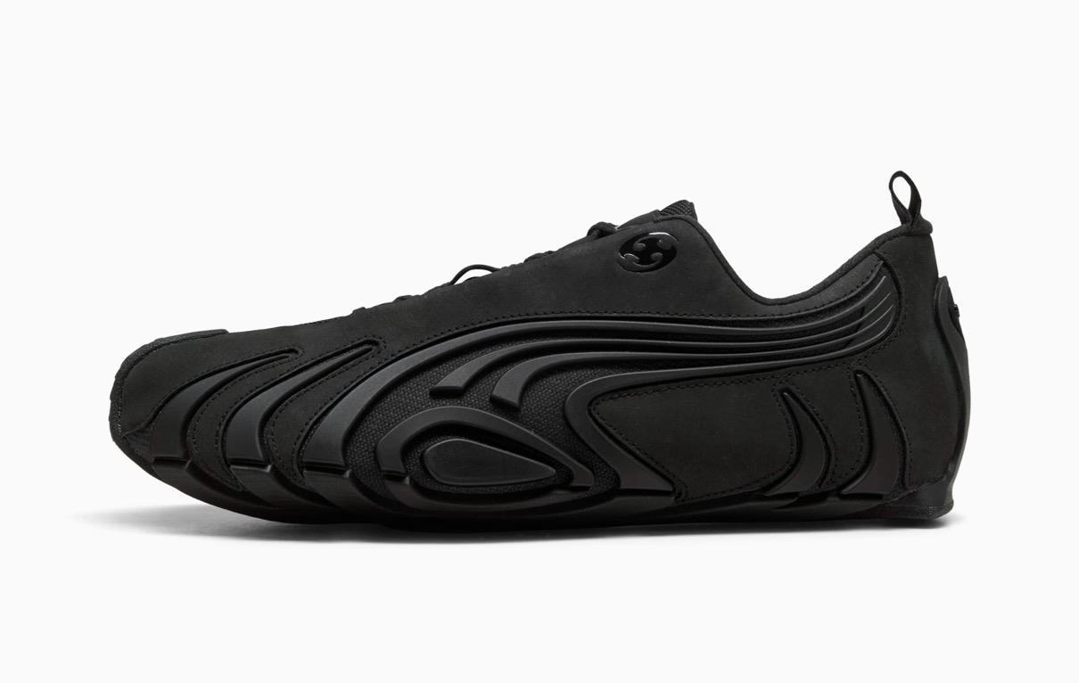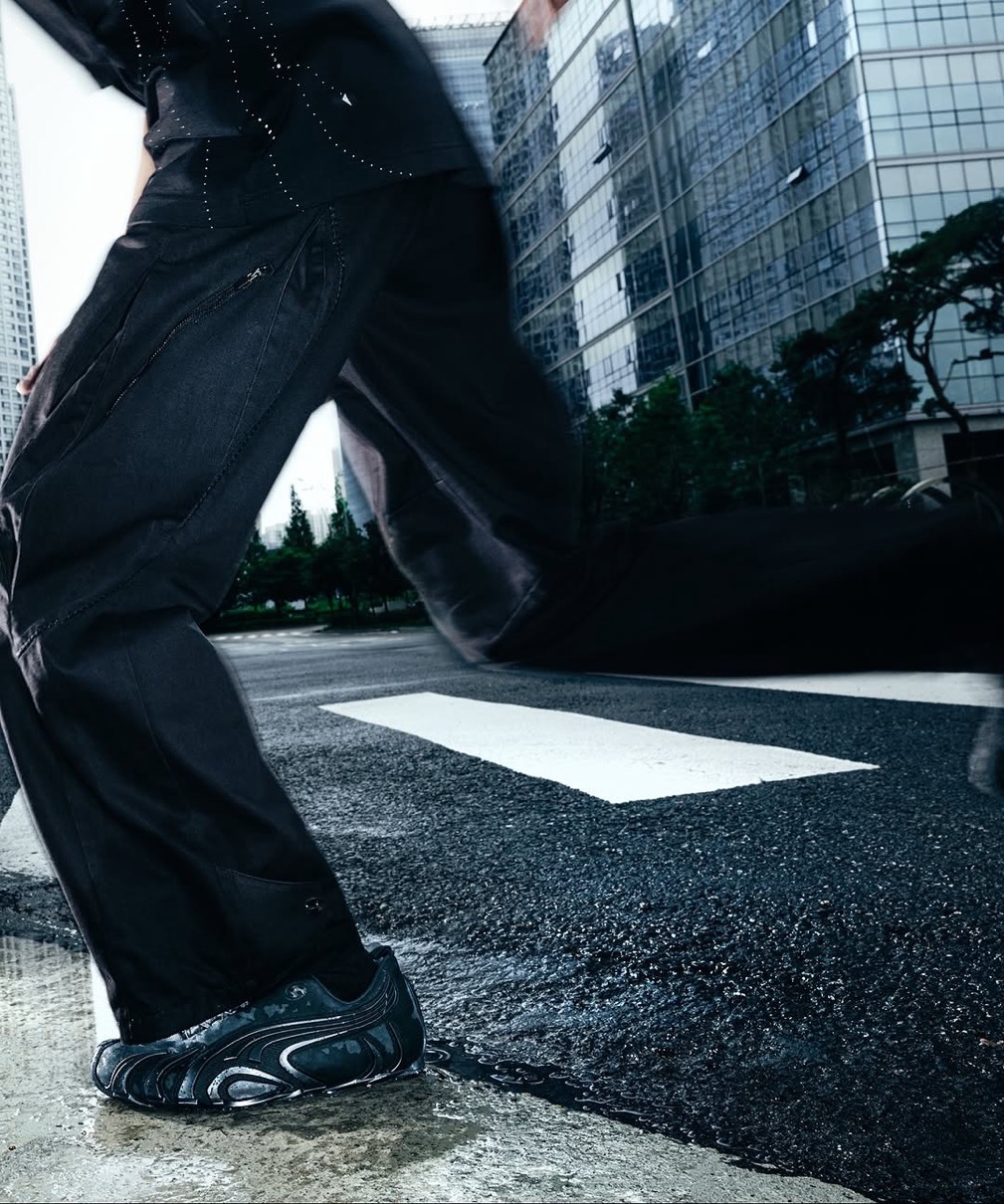 今回のコラボでは、1999年に初登場したプーマのシューズ「Mostro(モストロ)」と、2004年に誕生したアーカイブ『Talon(タロン)』をベースに採用。ブラックのアッパーにテック素材を取り入れ、Y2Kスタイルを新たな視点で再解釈。 SAN SAN GEARの“野性味”と“自由なスピリット”を、動きのあるスタイルに落とし込んだコレクションに仕上がっている。