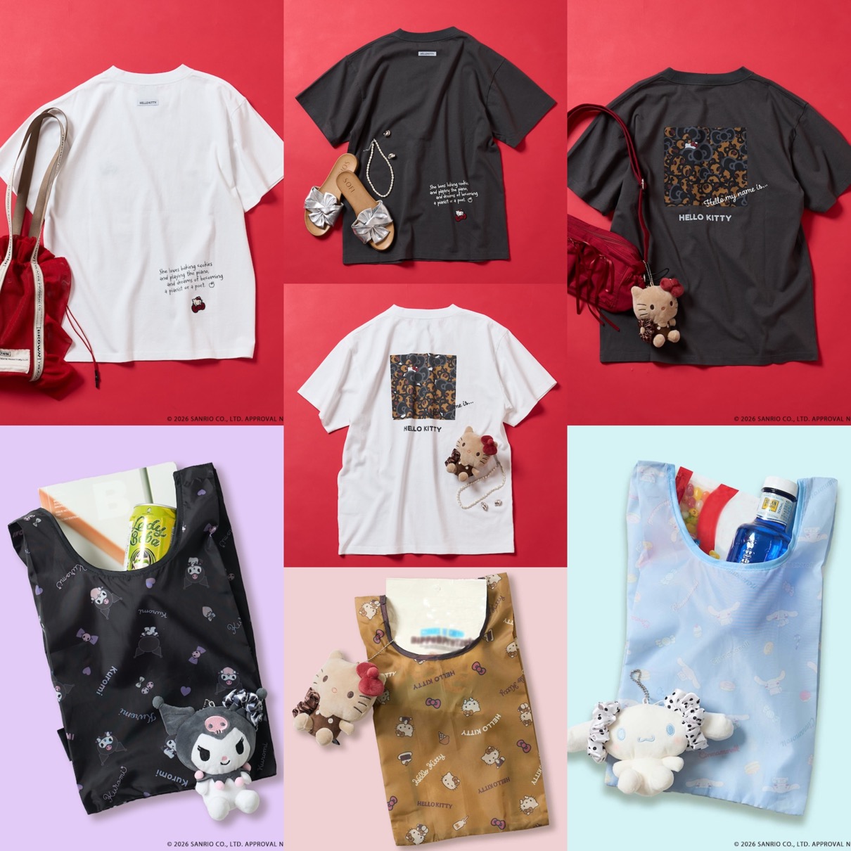 サンリオキャラクターズ x スマスト x フリークスストア によるコラボTシャツ&エコバッグ入りぬいぐるみチャームが登場。