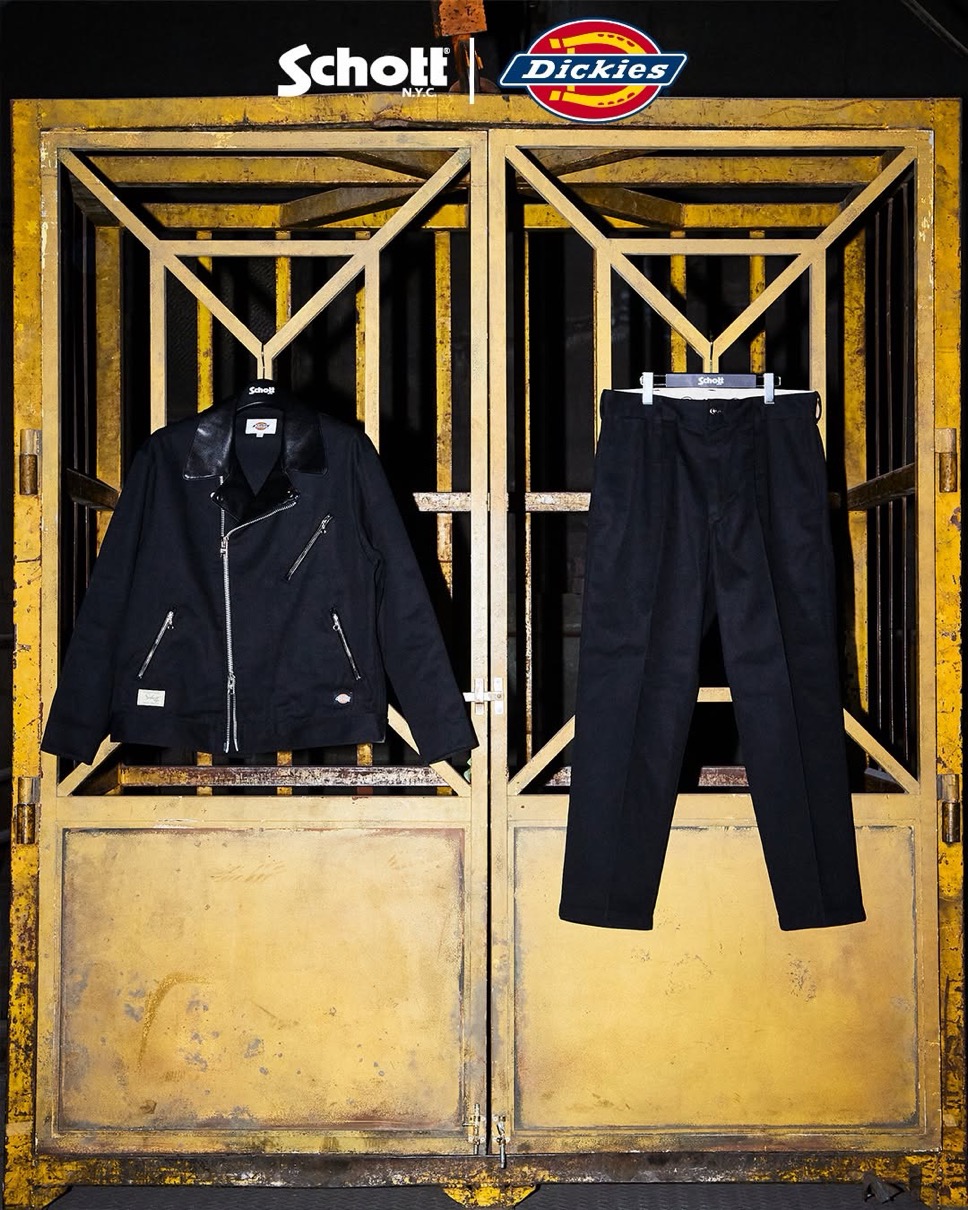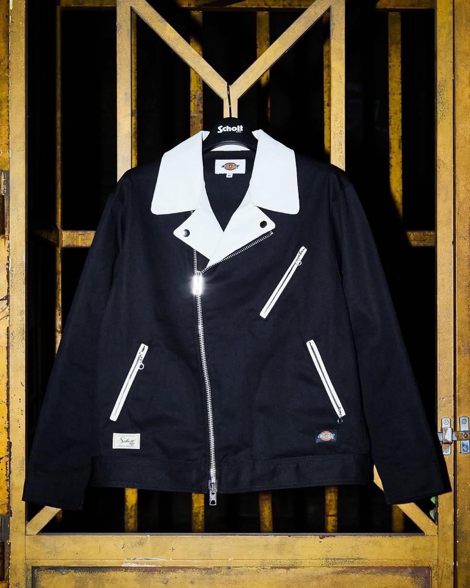 ライダースジャケットの代名詞ともいえるアメリカ発のファッションブランド「Schott(ショット)」と、1922年設立の老舗ワークウェアブランド「Dickies(ディッキーズ)」による新作コラボアイテムが、国内2026年1月1日(木)より発売予定。