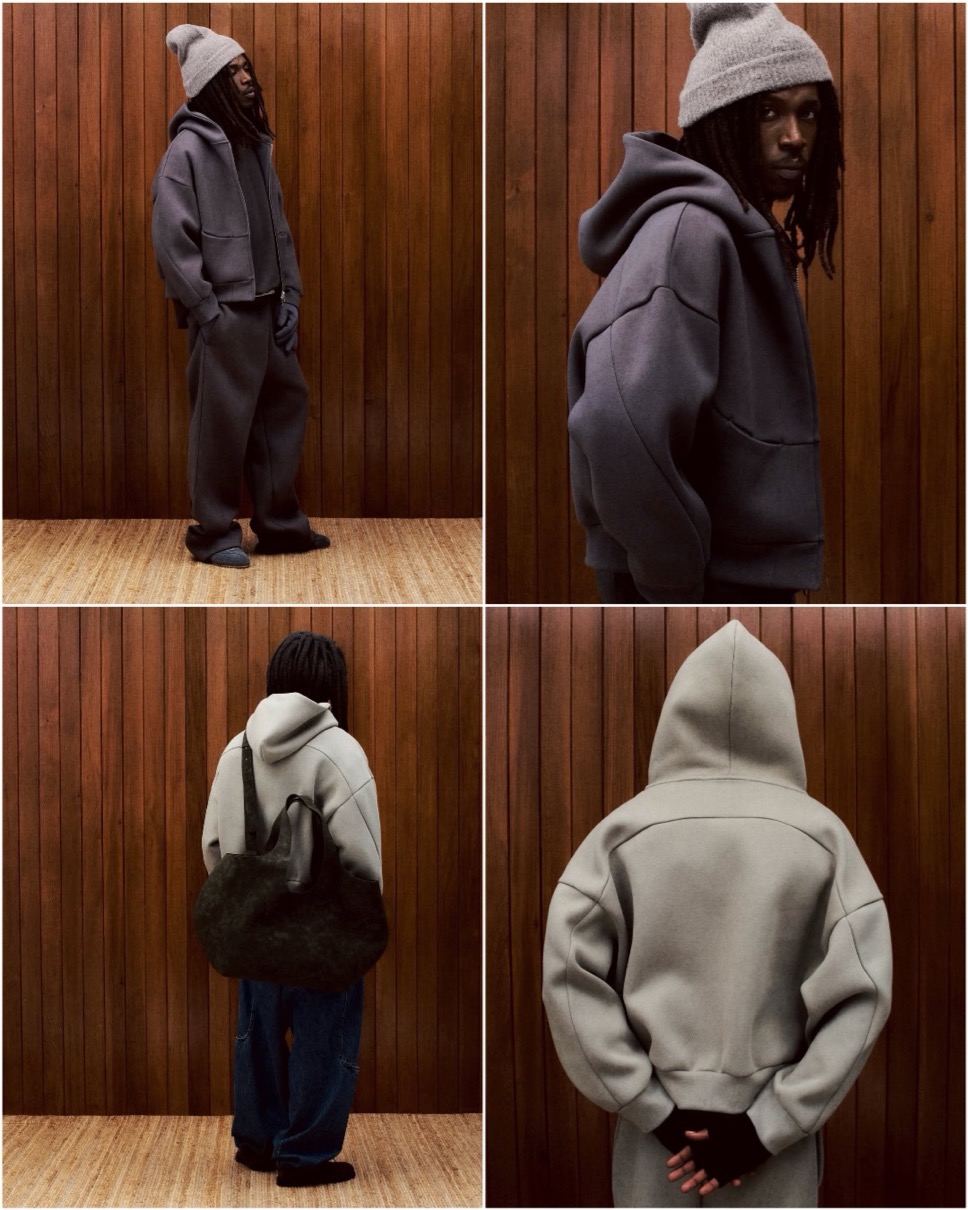 コレクションには、休息を連想させる『ジップフーディ』と『スウェットパンツ』をベースに、ポケットワークなどのディテールをより実用性と快適性を高めたアイテムをはじめ、BEAMSが日本を代表するセレクトショップとして培ってきたアメリカンカジュアルの文脈と、〈Seventh〉のアイコン的なシルエットを融合させた『デニムジャケット』と『デニムパンツ』がラインナップ。〈Seventh〉としてはあまり類を見ないヴィンテージ加工を施すことで、時間の経過を感じさせる表情とモダンな佇まいを併せ持つ特別な仕上がりとなっている。さらに、ブランドが通常展開している『トートバッグ』のフォルムを踏襲しながら、素材をビーガンレザーへ変更することで、ミニマルさを保ちつつ、より上品で洗練された印象へと昇華した。