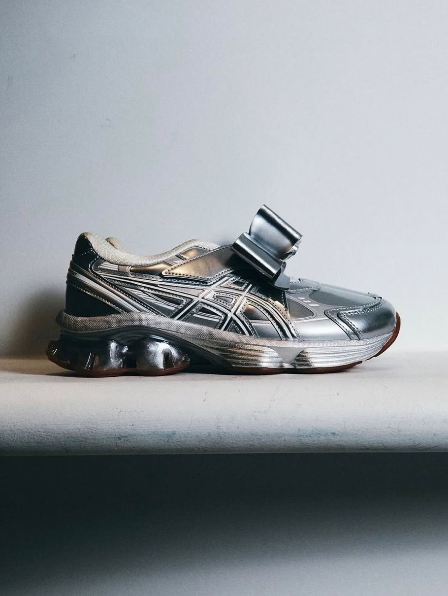 ASICSのライフスタイルシューズ『Gel-Kinetic Fluent(ゲルキネティック フルーエント)』は、アシックスのアーカイブランニングシューズから着想し、その伝統を現代のテクノロジーで再構築した一足。2025年8月にリリースされた前作に次ぐ今回は、ピュアシルバー/ホワイト、ブラック/ホワイトの2色が展開。取り外し可能なベルクロリボンがシルエットを柔らかくし、バレエコアのスタイルを彷彿とさせつつモジュラー性を維持。本モデルは、伝統的なテクノロジーとロマンチックな反骨精神を調和させた、汎用性の高いステートメントピースである。この繊細さとGEL-KINETIC FLUENTシューズのテクノロジーの融合により、SHUSHU/TONGが独自に持つ女の子の多面的な力を捉えている。