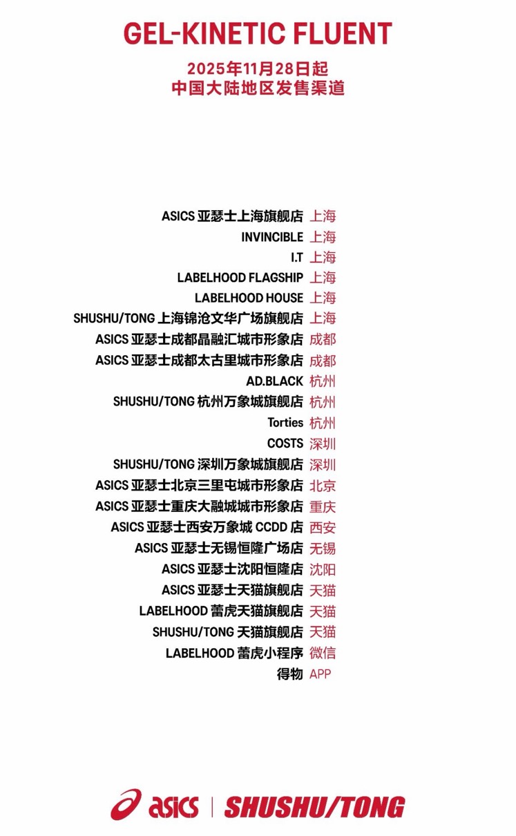 2014年に中国・上海で設立されたウィメンズブランド「Shushu/Tong(シュシュ/トング)」と、日本発のスポーツブランド「ASICS(アシックス)」によるコラボシューズ『Gel-Kinetic Fluent』の新作が、現地時間2025年11月28日に中国で先行発売。現地時間12月5日より世界中でグローバルリリースされる予定。