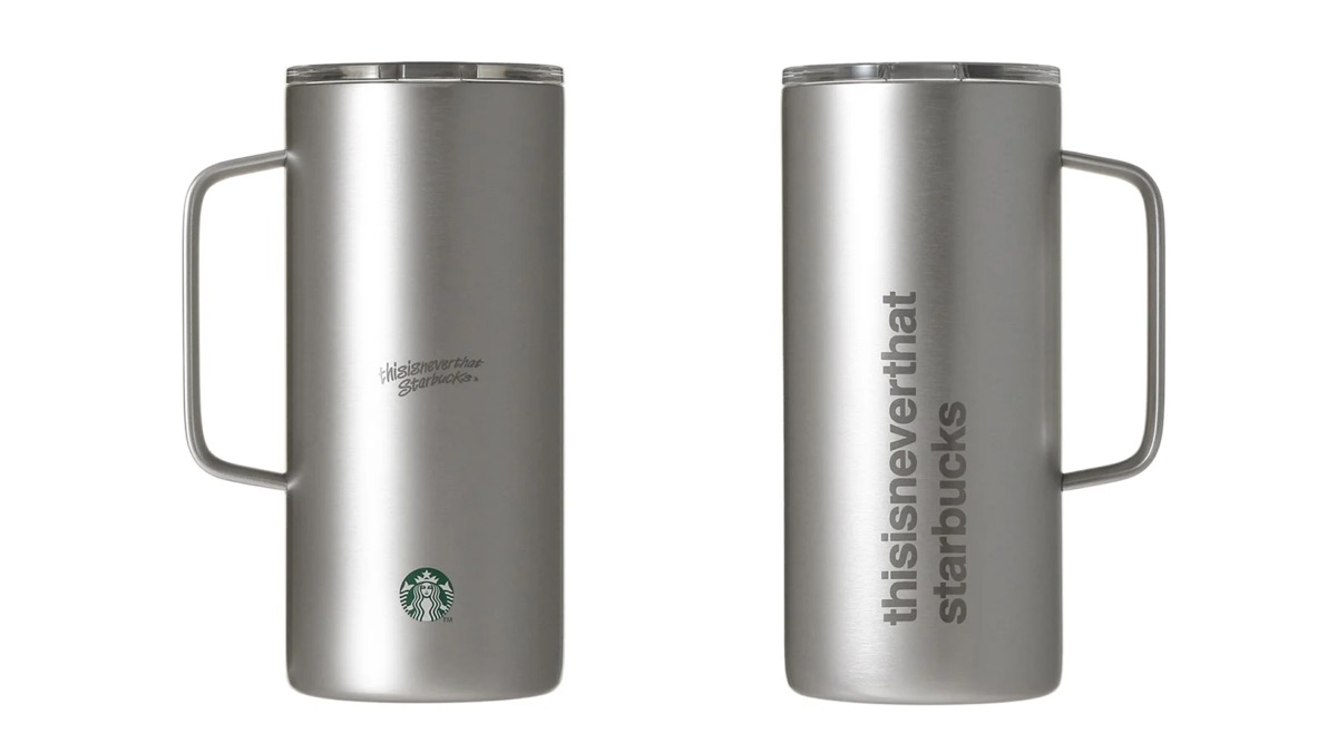 直線的な輪郭と、ステンレスを削り出したかのような見た目が特徴のステンレスマグタンブラー。thisisneverthatの本国である韓国のスターバックスで非常に人気なモデル(形状)を採用し、前面には「thisisneverthat」のロゴタイプに「starbucks」を組み合わせたオリジナルデザインを施した。
