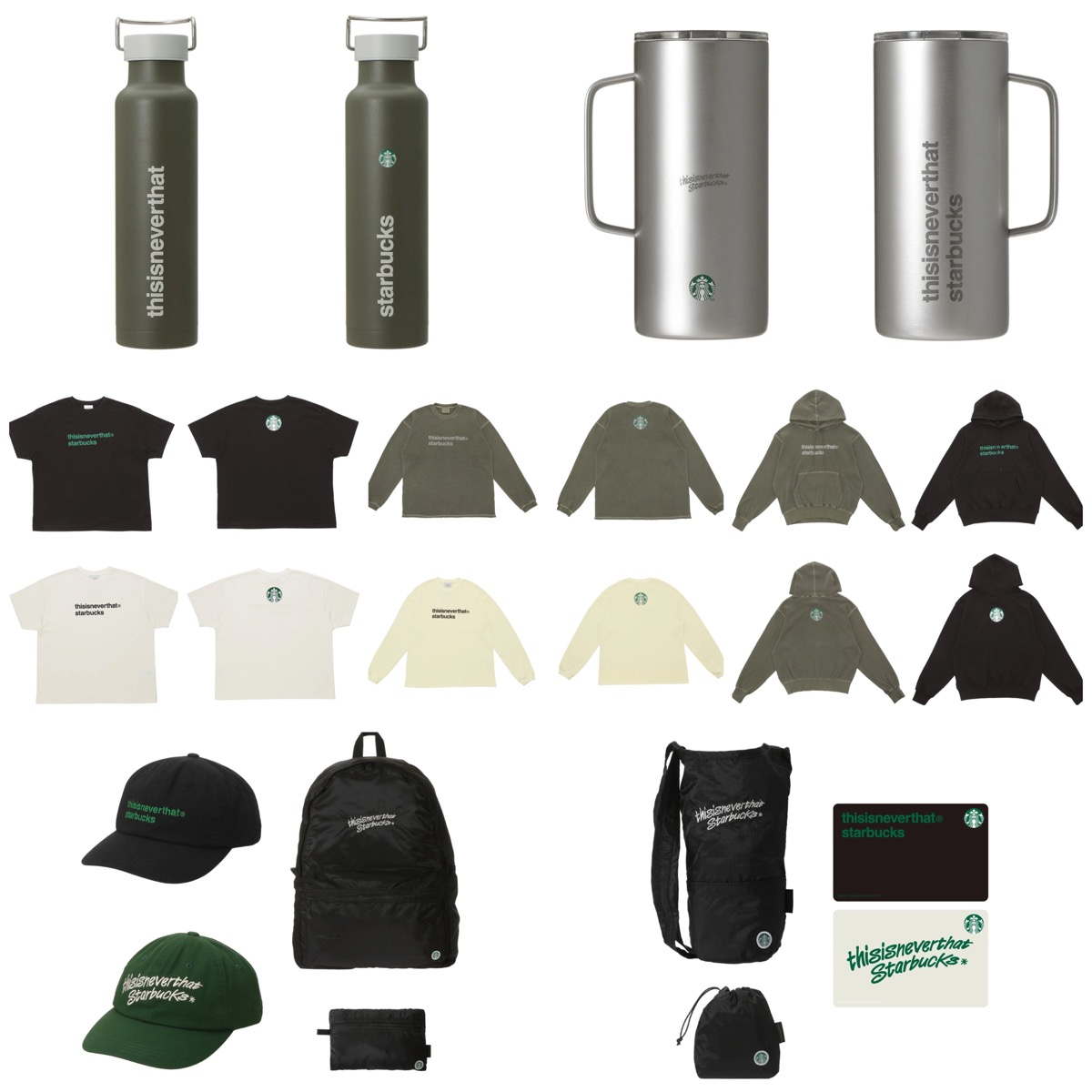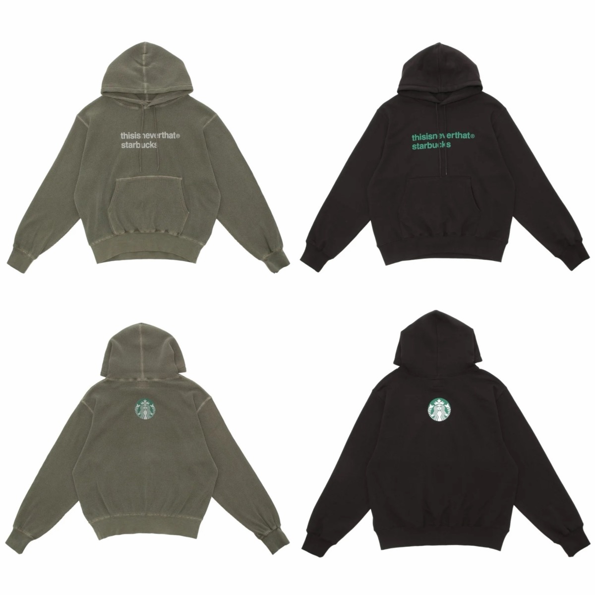 前面は「thisisneverthat」、背面は「starbucks」の文字をあしらったデザインを採用。