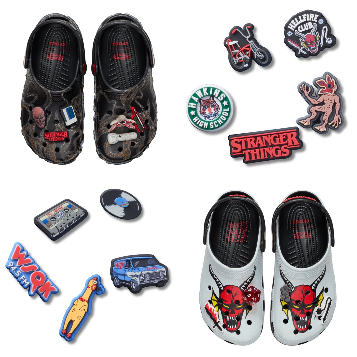 「ストレンジャー シングス ヘルファイヤー クロッグ」は、登場人物が所属している、ホーキンス高校のサークル「ヘルファイア・クラブ」のマークがあしらわれた象徴的なアイテム。作中でも度々「ヘルファイア・クラブ」のTシャツが登場しており、印象に残るマークを大胆にクロッグに落とし込んでいる。ダンジョンズ&ドラゴンズのゲームのプレイシーンで使われていた20面ダイスやメタルドラゴン等、細部までワクワクする作品の魅力が1足に落とし込まれた。キッズサイズも展開し、子供から大人まで「ヘルファイア・クラブ」の仲間になれるクロッグとなっている。SFホラーとしてのスリリングさとノスタルジックな雰囲気のある、「ストレンジャー・シングス 未知の世界」は世界中で愛されているNetflixの人気作品。今回、クロックスと初めてタッグを組み、ファンなら誰しもが欲しくなる魅力的なアイテムが完成。ホーキンスの不気味な町や、奇妙な出来事がよみがえってくる、あの世界での体験を足元から感じてみよう。また、ビッツ™ チャームのセットも同時リリース。「ネットフリックス・ストレンジャー・シングス 5パック」はストレンジャー・シングスのロゴやデモゴルゴンをモチーフにしたダークなアイテムとなっており、「ストレンジャーシングス スクウォーク5パック」にはWSQKラジオ局をモチーフとしたノスタルジーな雰囲気のジビッツ™ チャームとなっている。自由にカスタマイズでき、自分だけのスタイルを作る楽しさもクロックスの魅力の一つだ。本コレクションは以下公式オンラインおよび取扱店にて11月20日(木)より発売開始。国内販売情報の追加など、新たな情報は判明し次第随時更新予定なのでお見逃しなく。