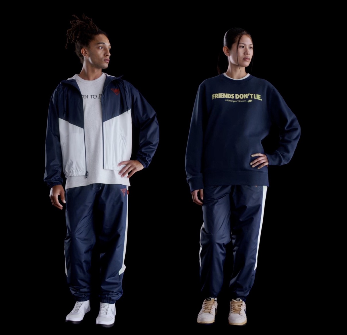 先に公開されたコラボ「ダンク(Dunk)」に続き、最終シーズンでそれぞれのキャラクターが履いたシューズにインスパイアされた3つの新スニーカーが登場する。エアマックス1 ’87はスティーブ・ハリントン、フィールドジェネラル ハイはイレブン、LD-1000はエリカ・シンクレアが履いたシューズを忠実に再現しており、シュータンタグやヒールのロゴは逆さに配置。いずれもシューズの他に、特別なパッケージと4個パックのピンズが付属するという。また、ナイキはスニーカーに加え、『ストレンジャー・シングス』最終シーズン向けのアパレルコレクションも展開予定。トラックジャケット、スウェットスーツ、Tシャツなどが含まれ、いずれも両者のロゴとテレビ番組へのオマージュデザインが施される。