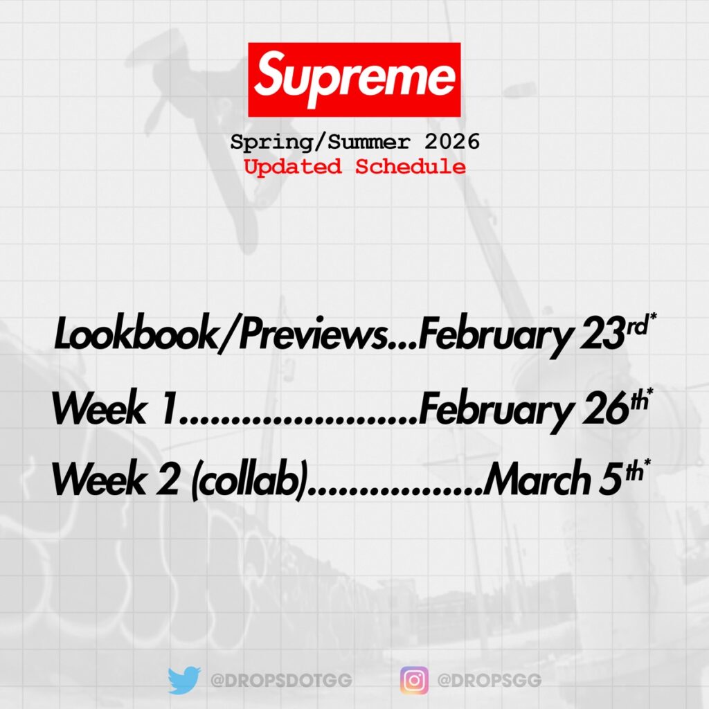 1994年に James Jebbia(ジェームス・ジェビア)が設立したスケーターブランド「Supreme(シュプリーム)」。本稿では最新コレクションとなる 2026SS Collection のリーク情報、立ち上げ日程、各Weekの発売アイテムなどを随時予定だ。(昨シーズン2025FWの情報まとめ記事はコチラ)