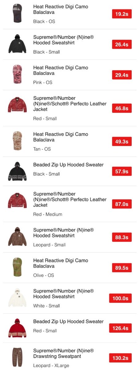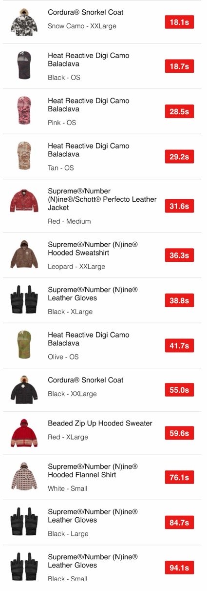 シュプリーム 2025年秋冬コレクションWEEK16 海外オンラインの完売スピードランキングが公開。【2025FW】