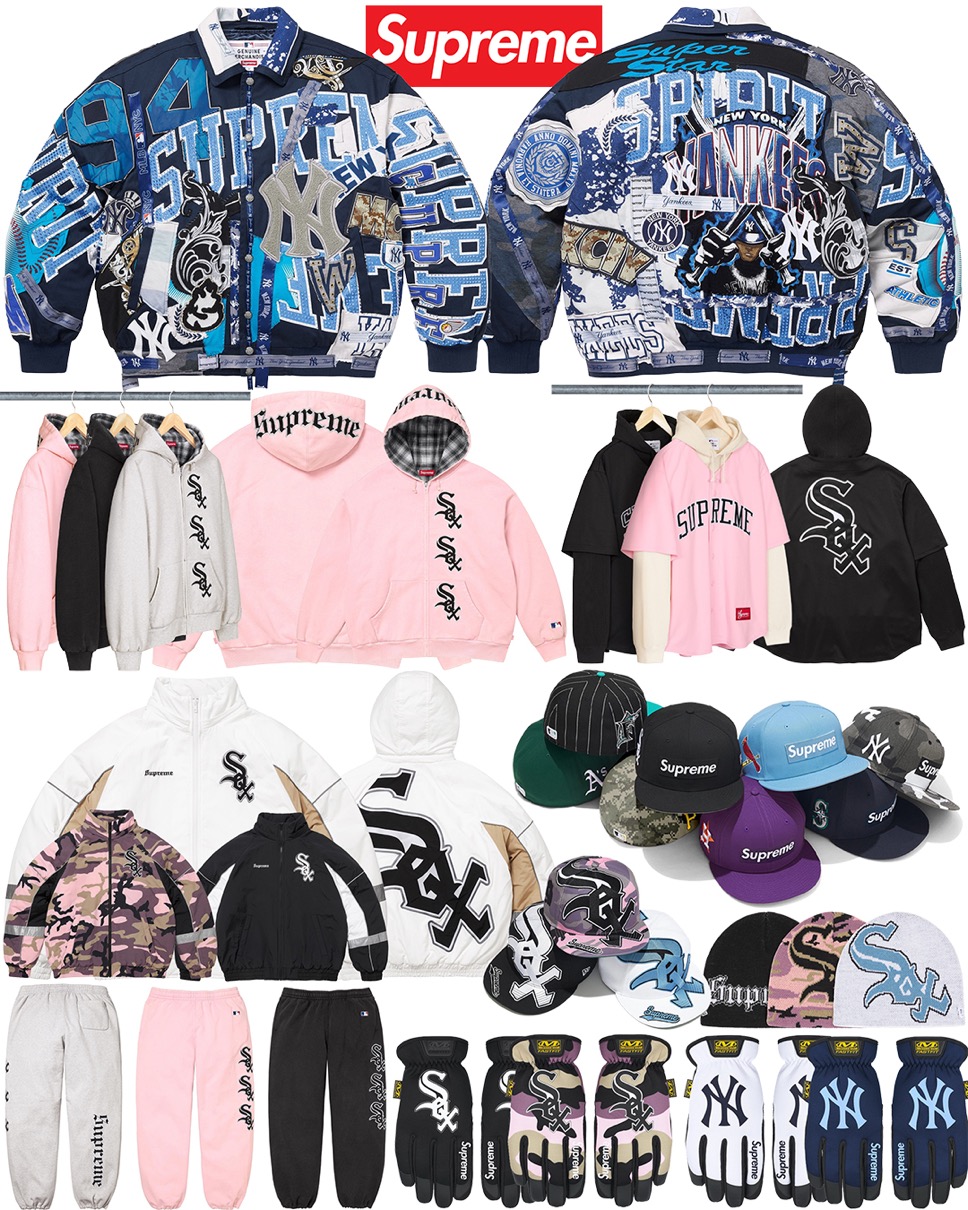 世界最高峰のプロ野球リーグ「MLB(メジャーリーグベースボール)」のニューヨーク・ヤンキース、シカゴ・ホワイトソックスとの各種コラボアイテムも展開。ジェフ・ハミルトンのヴァーシティジャケットをはじめ、スタジアムジャケットやジップフーディー、ニューエラBox Logoキャップ、ビーニー、スウェットパンツ、Mechanix製グローブなどがラインナップ。