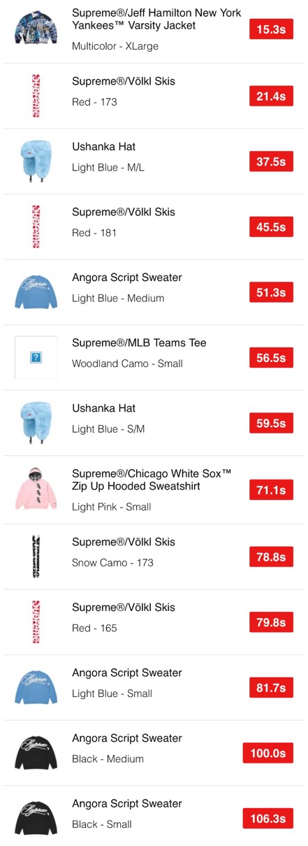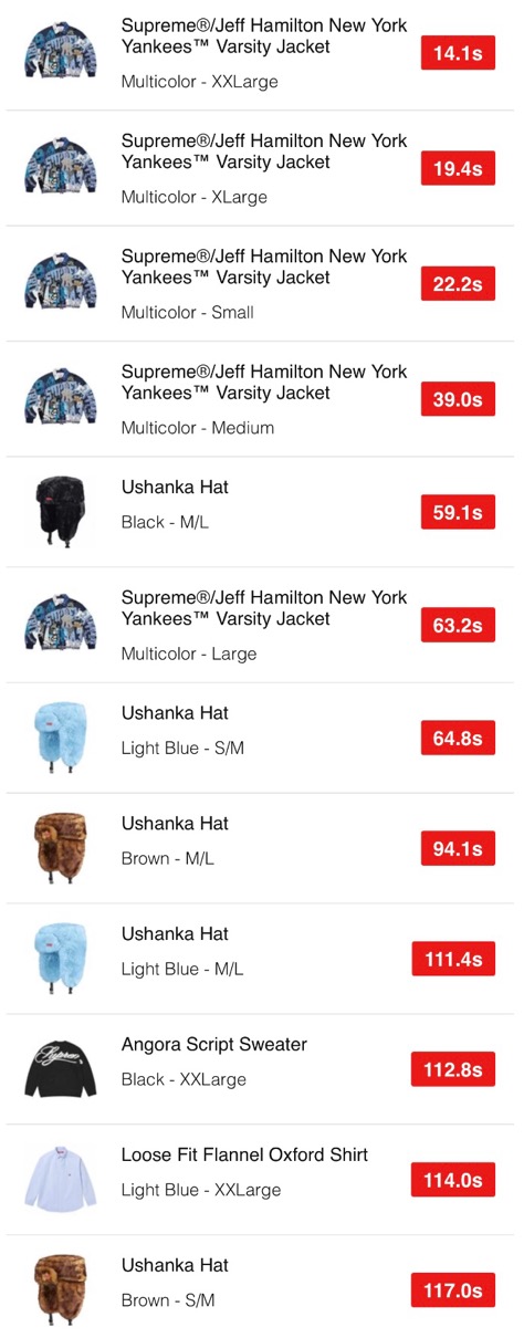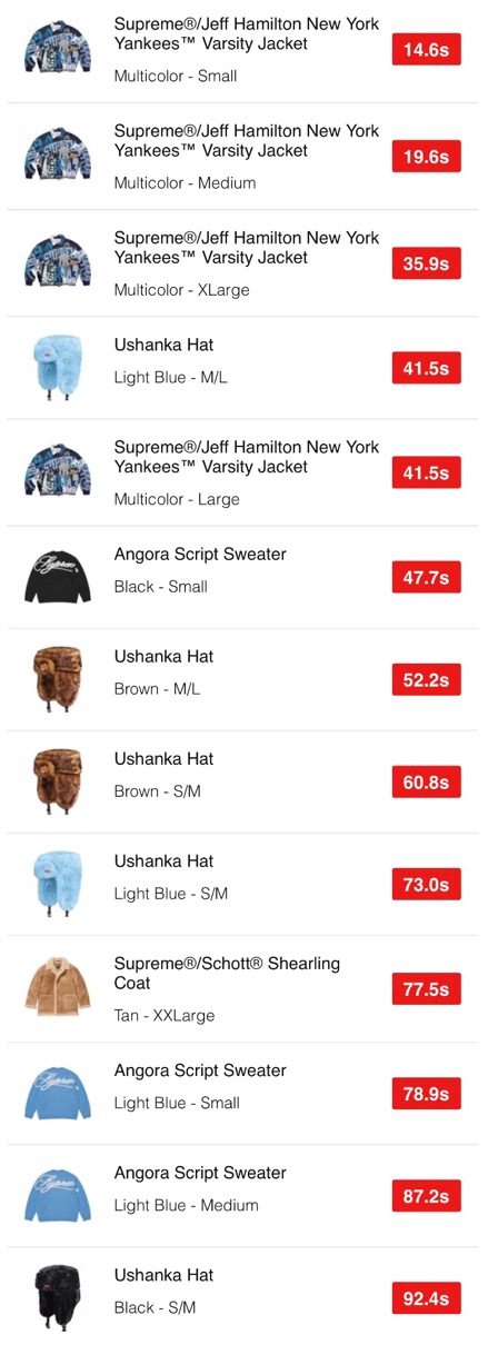 シュプリーム 2025年秋冬コレクションWEEK17 海外オンラインの完売スピードランキングが公開。【2025FW】