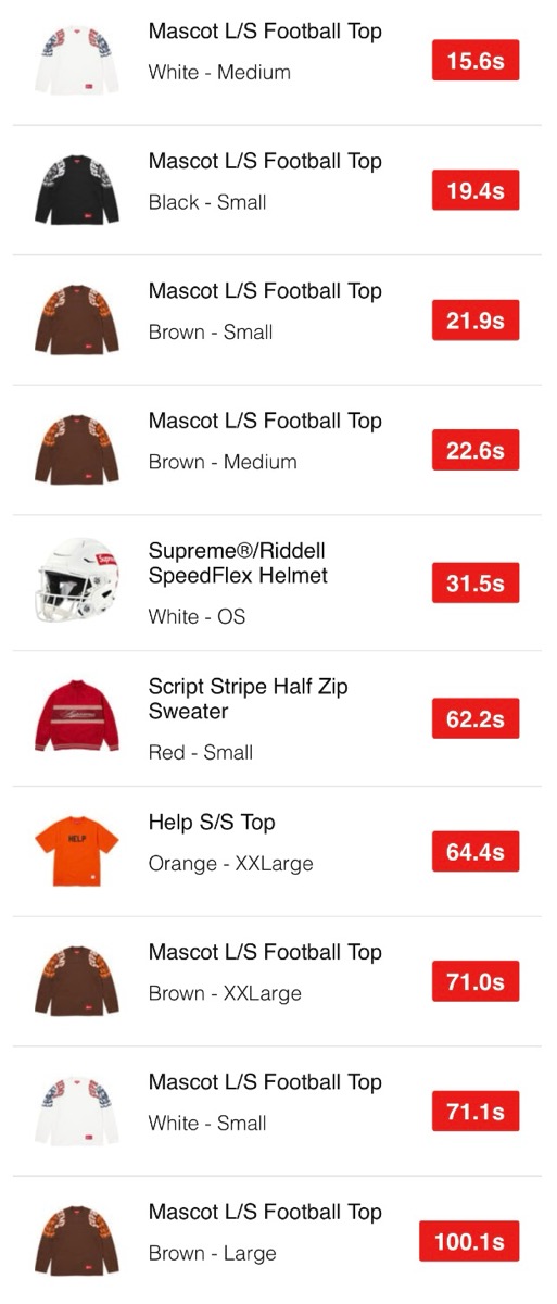 シュプリーム 2025年秋冬コレクションWEEK6 海外オンラインの完売スピードランキングが公開。【2025FW】