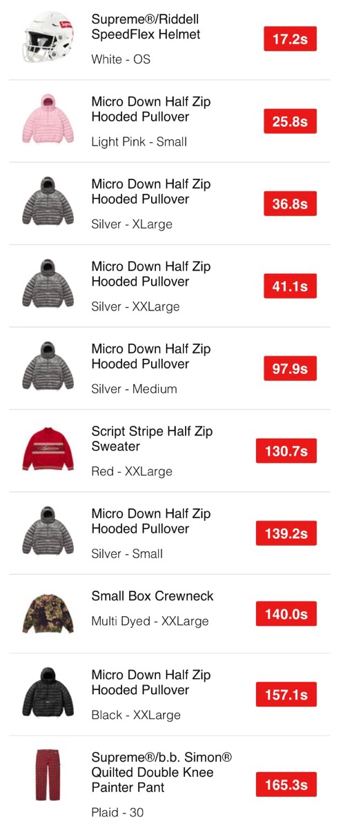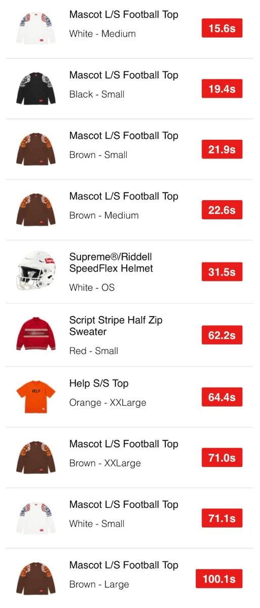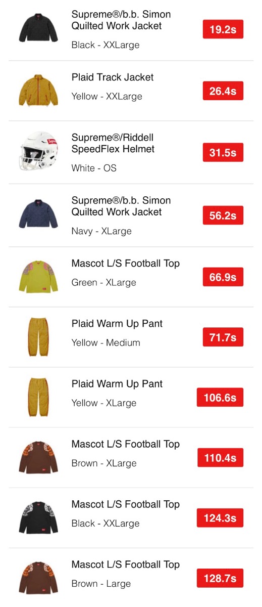 シュプリーム 2025年秋冬コレクションWEEK6 海外オンラインの完売スピードランキングが公開。【2025FW】