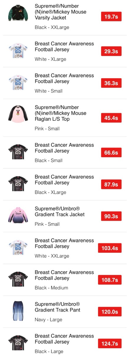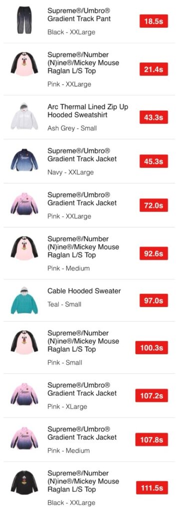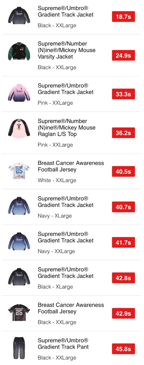 シュプリーム 2025年秋冬コレクションWEEK8 海外オンラインの完売スピードランキングが公開。【2025FW】