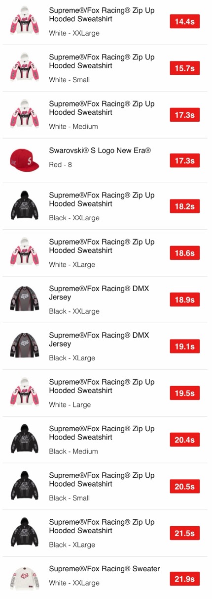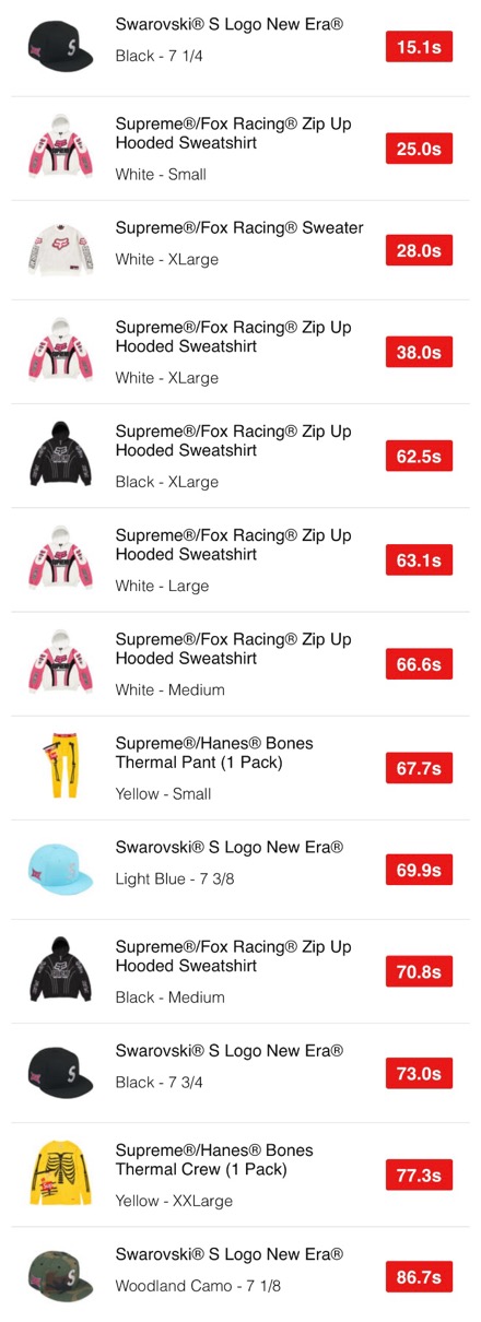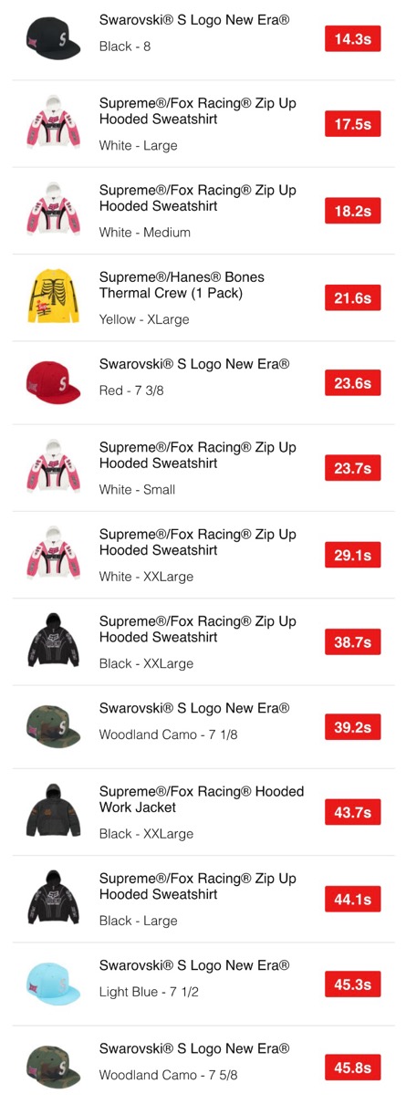 Supreme 25FW WEEK9 US / EU / UK 海外の完売タイムランキングが公開