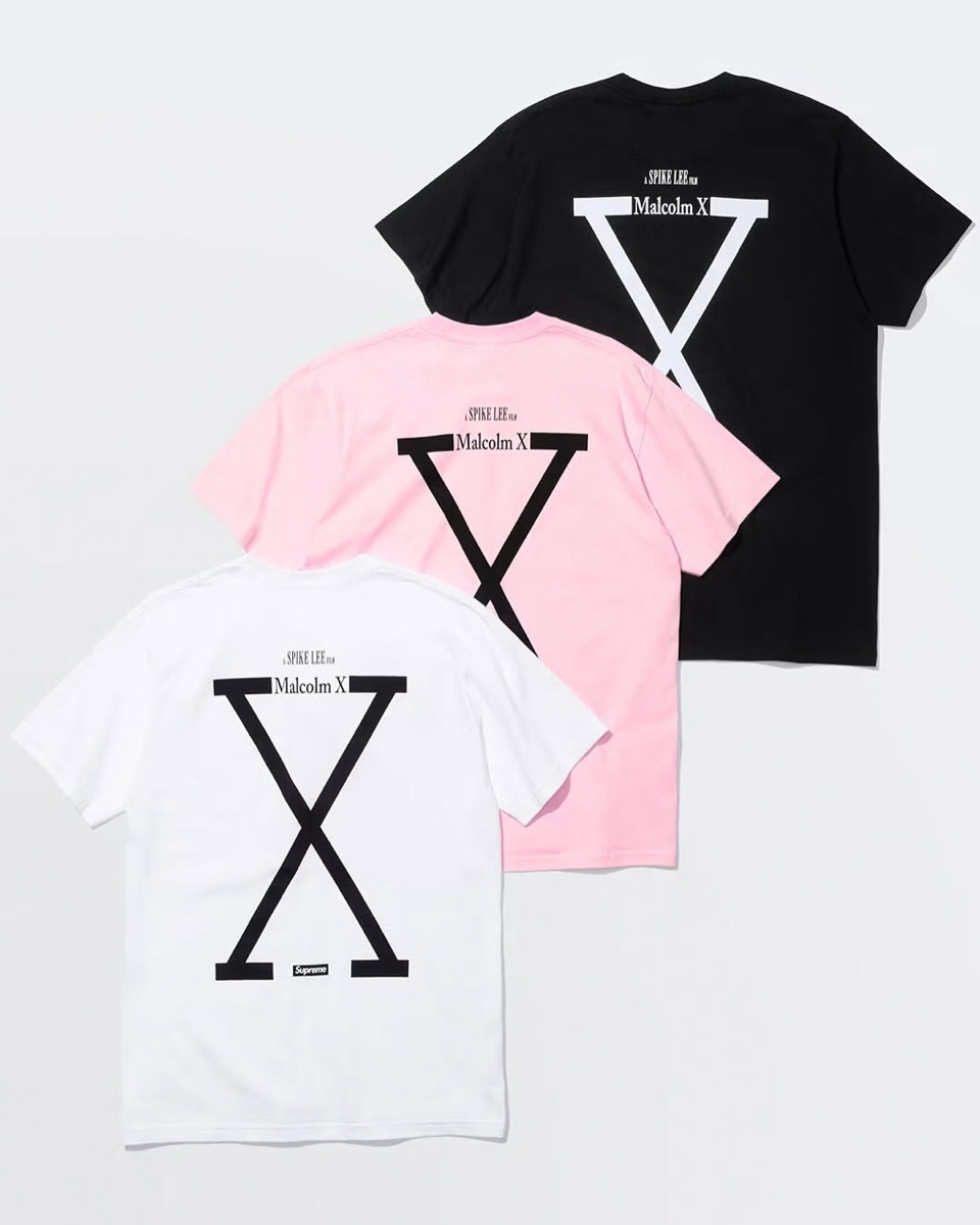 今週は、映画監督のSpike Lee(スパイク・リー)が指揮をとる映画製作会社『40 Acres Production(フォーティ エーカーズ プロダクション)』とのコラボアイテムが登場。今回シュプリームはスパイク・リーと共同で、アフリカ系アメリカ人の黒人解放運動指導者 Malcom X(マルコムX)にフォーカスしたリーの映画『マルコムX』と『クロッカーズ(Clockers)』をフィーチャーした40エーカーズコレクションを制作。ヴァーシティジャケット、ベースボールジャージ、Tシャツ2型、6パネルキャップがラインナップする。