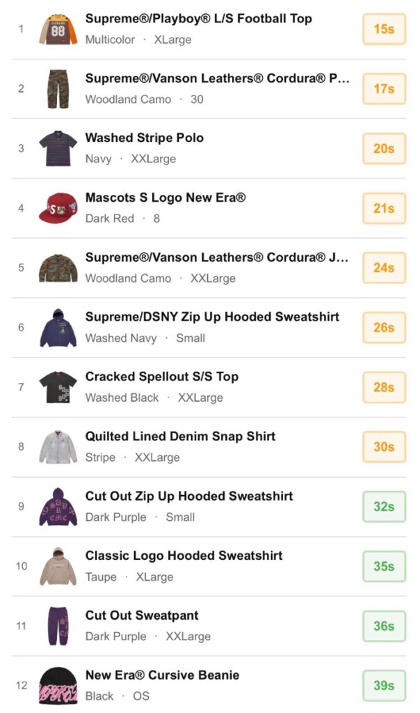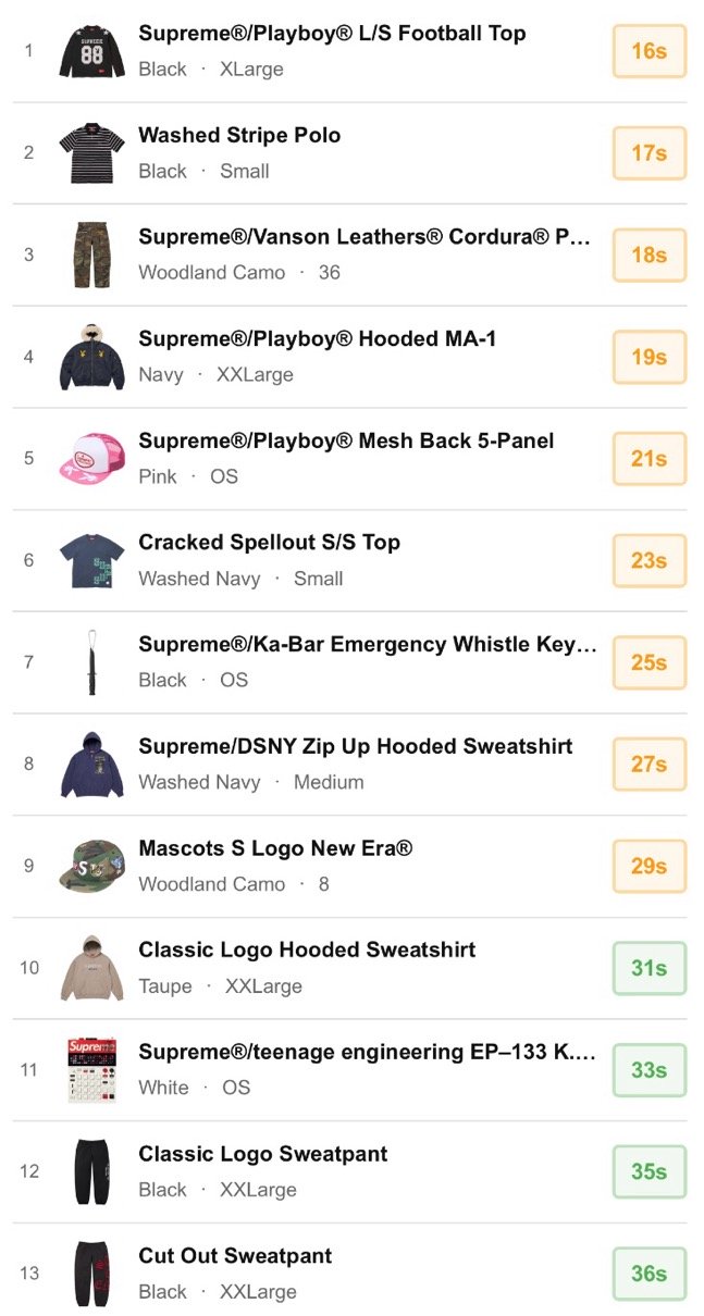 シュプリーム 2026年春夏コレクション WEEK3 海外オンラインの完売スピードランキングが公開。【2026SS】