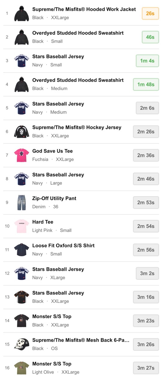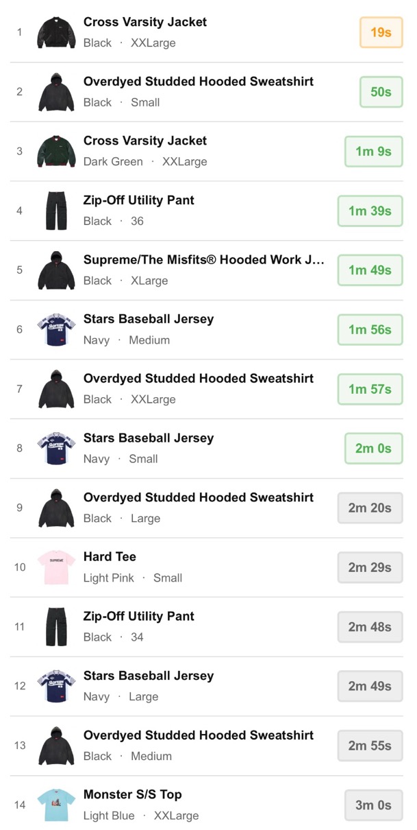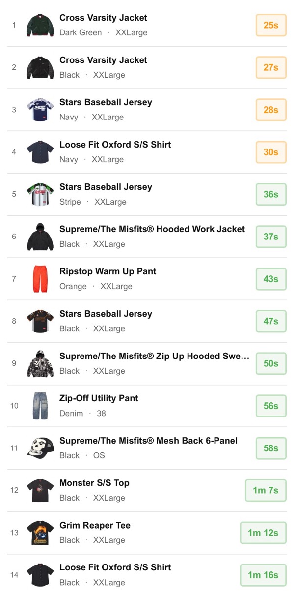 シュプリーム 2026年春夏コレクション WEEK7 海外オンラインの完売スピードランキングが公開。【2026SS】
