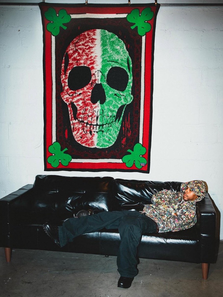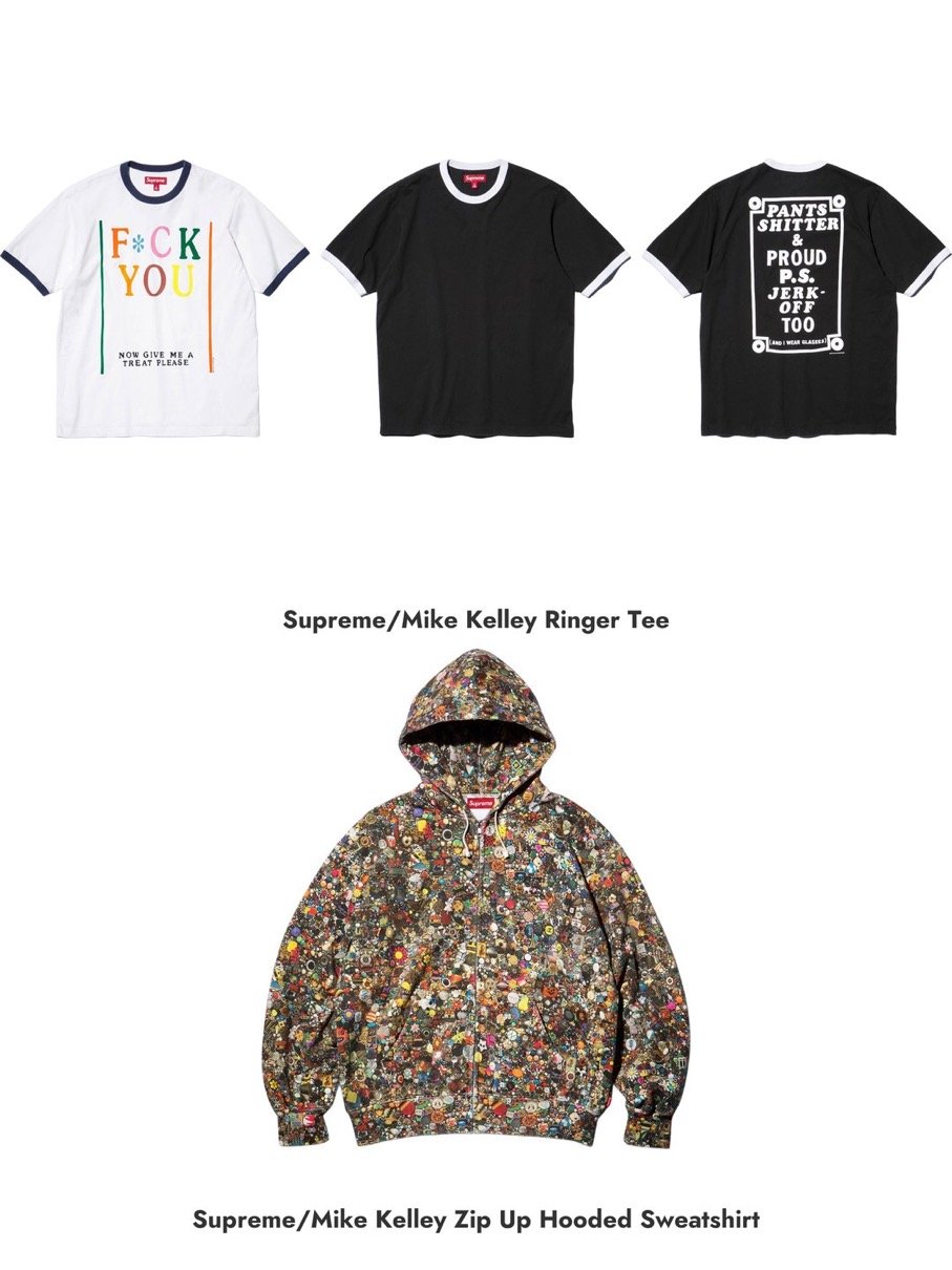 マイク・ケリーとのコレクションには、S/Sシャツ、サーマル、リンガーTシャツ、フーデッドスウェットシャツ、スウェットパンツ、Tシャツ2種、キャンプキャップ、Faribault Mills®のスローブランケット、そしてスケートボードが含まれていますラインナップ。