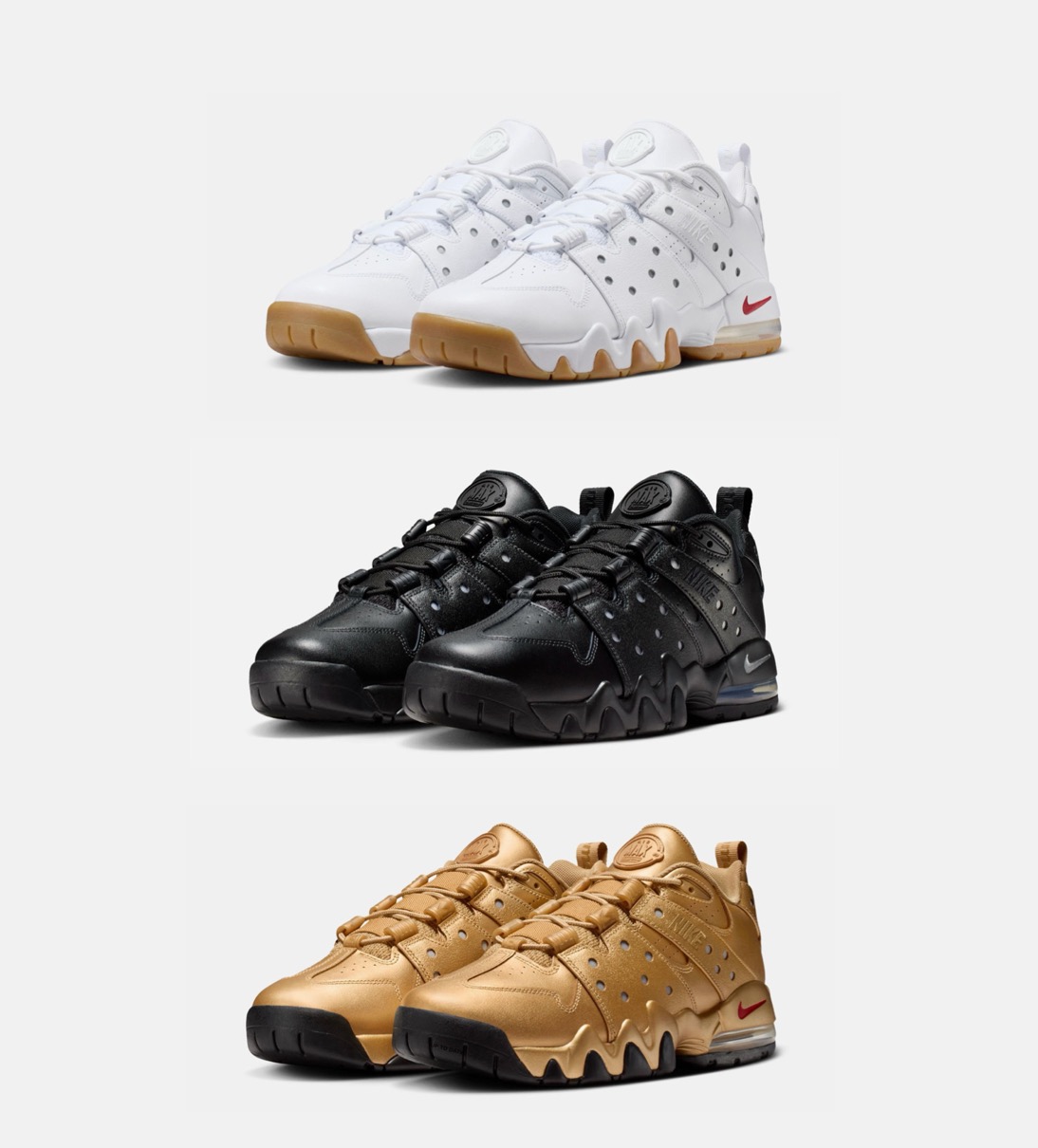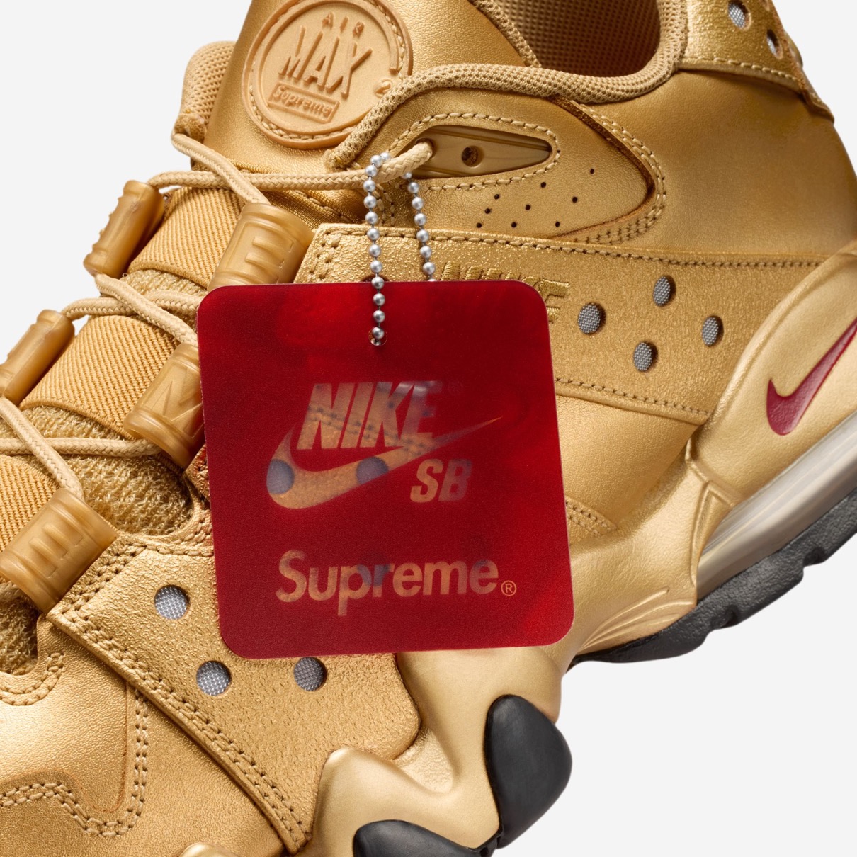 ブラック、ホワイトガム、メタリックゴールドの3カラーウェイで展開される本パックは、ミッドソールを覆う鋭い歯のようなラグパターンと、特徴的なナイキエアを搭載したエアマックスCB 94 ローの構造を維持。Supremeのブランディングがタン、ヒールタブ、インソール、アウトソールに刻印されており、バックヒールにはNike SBのロゴが落とし込まれている。さらに、Nike SB x Supreme専用ハングタグと、スタイリングの自由度を高めるスペアシューレースが付属。ホワイトガムカラーは伝統的な洗練さを、ブラックはステルス感を、メタリックゴールドは際立つスタイルをそれぞれ表現している。