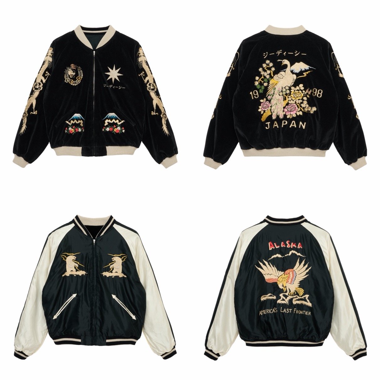 また、今回のリバーシブル仕様では、ヴィンテージ市場でも希少とされる「アラスカジャン」をベースに構築。稲妻と白熊のデザインで知られるオリジナルを踏襲しつつ、GDCの解釈により“熊”と“鷹”の組み合わせへとアップデート。袖には人気の高い龍の刺繍を採用。スカジャン史を象徴する数々のエレメントを一着に集約しながらも、GDCの美学と東洋エンタープライズの確かな技術によって成立した、特別な一枚となっている。