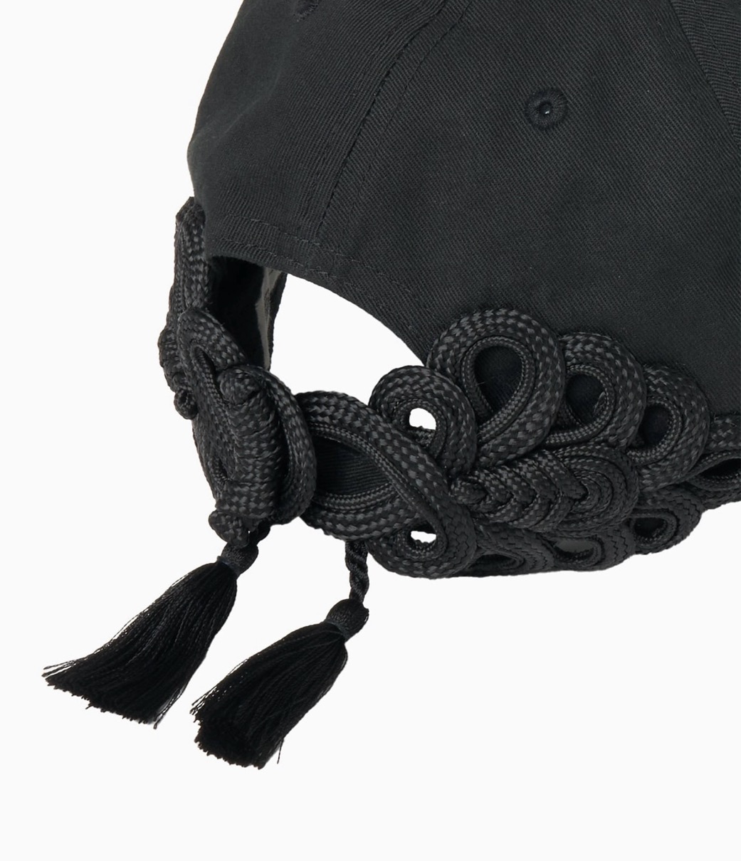 STUDIOUSが別注したスペシャルアイテム『China Ribbon Cap』は、チャイナボタンとタッセルでエキゾチックさをプラスしたキャップ。フロントはシンプルなブラックのデザインでコーディネートに加えやすいスタイルとなっている。