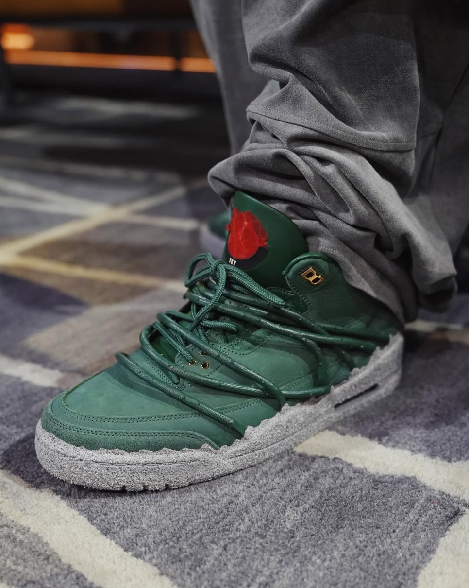 そんなテヤナ・テイラーがデザインした今作では、アッパーをファーグリーンのレザー素材で構築。シュータンにはファイヤーレッドの薔薇があしらわれ、シューレース周りにはレースとは別に緑のイバラパーツが巻き付くといった斬新なアイデアを採用。ヒールには象徴的なNike Airのロゴが配され、ミッドソールはざらついた質感の加工を施すことで、コンクリートに咲いた薔薇を表現。クラシックな要素と新鮮なデザインの選択の融合が、テヤナの創造的なビジョンを体現している。国内販売情報の追加など、新たな情報は判明し次第随時更新予定なのでお見逃しなく。