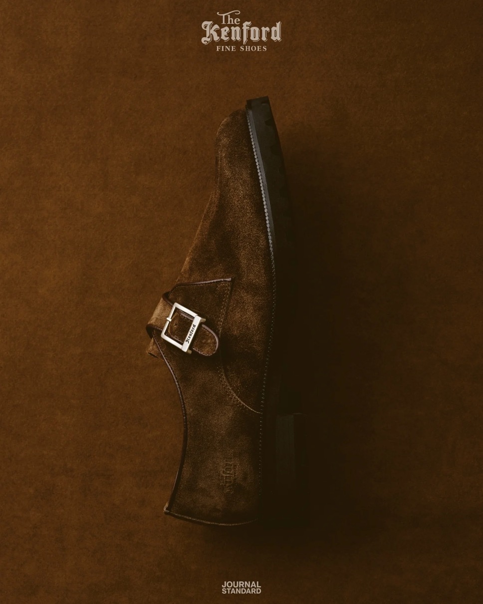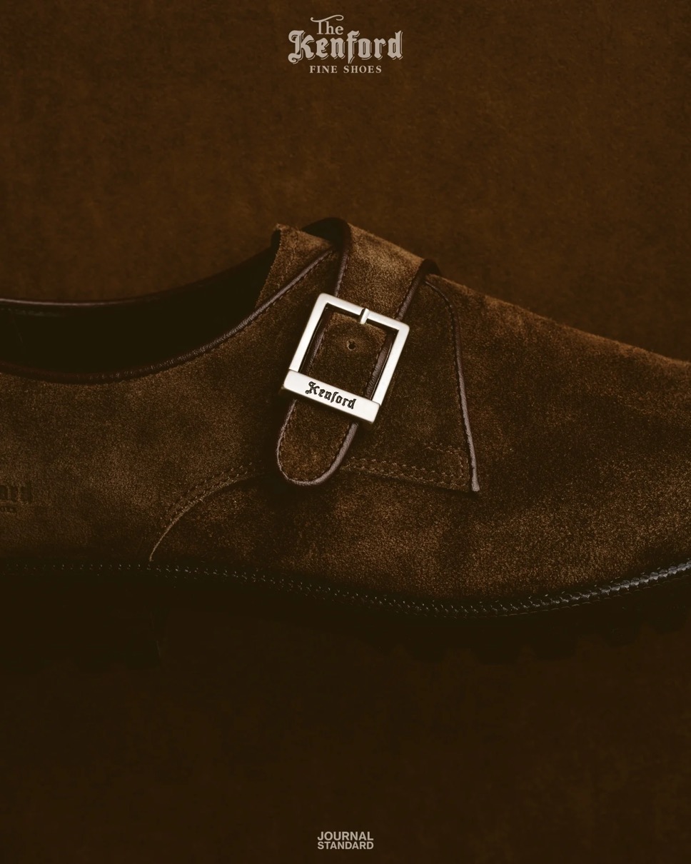 今回で2度目となるJOURNAL STANDARDによる別注企画。2000年代のアーカイブから着想を得た〈The Kenford Fineshoes〉の新定番「New Classic Monk Strap Shoes」をベースに、「SUEDE MONK STRAP」を製作。インラインにはないダークブラウンスエードを採用したこのモデルは、薄く設計したタンクソールとあいまって、ブーツのようなボリューム感にドレスシューズの洗練を重ねている。