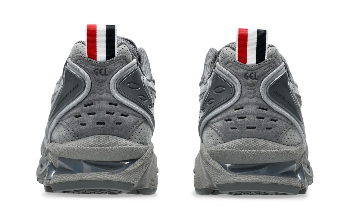今作でベースに採用されたのは、2000年代のレトロランニングシューズ『Gel-Kayano 14(ゲルカヤノ14)』。トムブラウンのテーラリングとアシックスならではのテクノロジーが見事に融合した自然な仕上がりの一足では、GEL-KAYANO™ 14の現代的なデザインに、高級感のあるスウェードとレザー素材を使用。トムブラウンの世界観であるスリムなブレザーや洗練されたクロップドパンツにもすんなり溶け込み、主張の強いシューズというより日常の定番アイテムとしての存在感を放つ今作、シュータンとヒールループにはトムブラウンを象徴する赤・白・青のトリコロール(3本線)のグログランテープをあしらわれ、カラーはグレー、ブラック、ホワイトの三色が展開する。