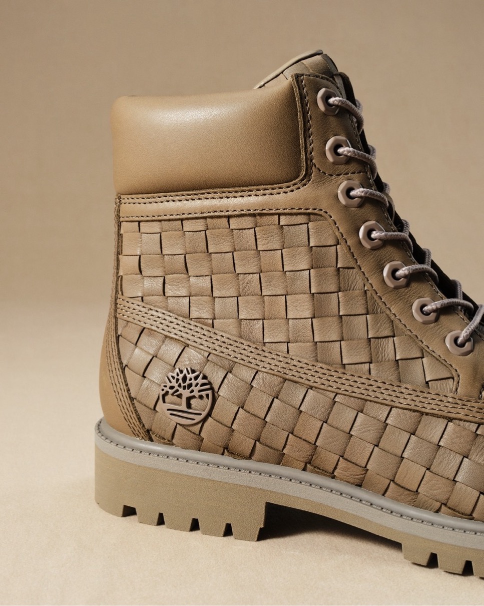 ボッテガ風の高級感溢れる格子状レザーの新作 ティンバーランド『6インチプレミアムウーブンブーツ “オリーブ” & “ライトベージュ”』が登場。[A6FD6-ET4 / A6FD6-EN2]