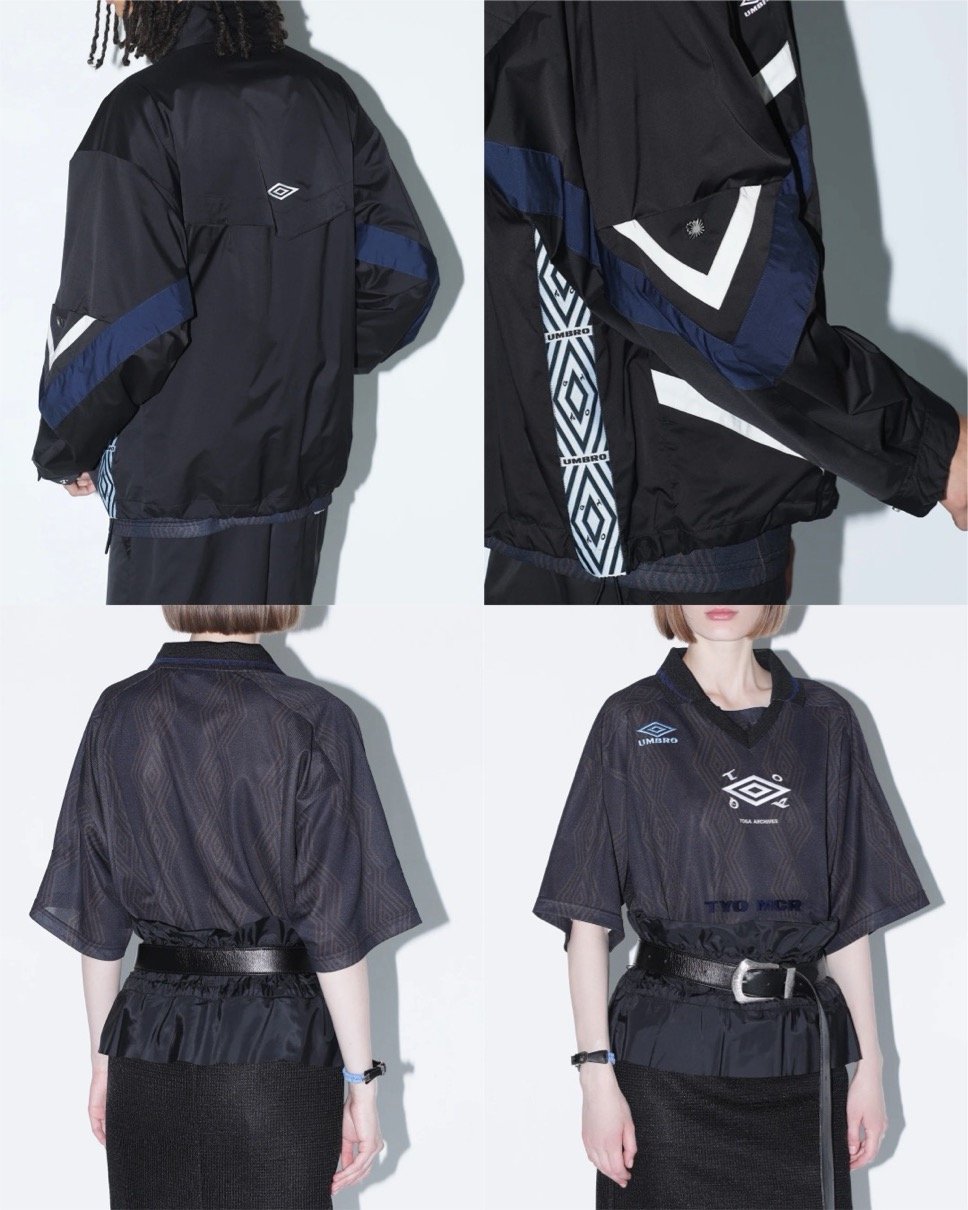 両者にとって初のコラボとなる2026年春夏シーズンは、アンブロが持つスポーツウェアとしての機能性に、TOGAを象徴するカッティングやメタル装飾を融合。スポーティでありながらも、モードな品格を損なわない全7型のラインナップを展開する。