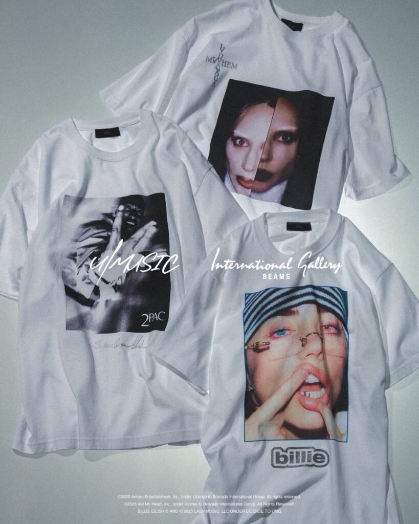 U/ミュージック x インターナショナルギャラリービームス コラボTシャツの新作ではLADY GAGA(レディー・ガガ)、BILLIE EILISH(ビリー・アイリッシュ)、2PAC(2パック)をフィーチャー。