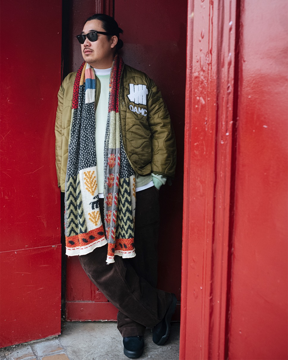 環境や社会に対してポジティブなメッセージを伝えていくことを理念に、ヴィンテージアイテムをカスタムし再構築するラインとして生まれたPEACEMAKER(ピースメーカー)。今作では一点一点異なる表情を持つM-65ライナージャケットに、「Peacemaker」と無敗を象徴する5ストライクスのシェニールパッチ、さらに「OAMC」のチェーンステッチをオン。本物のヴィンテージミリタリーをリワークしており、グリーン〜オリーブの色味は一点物、全く同じものは存在しない。