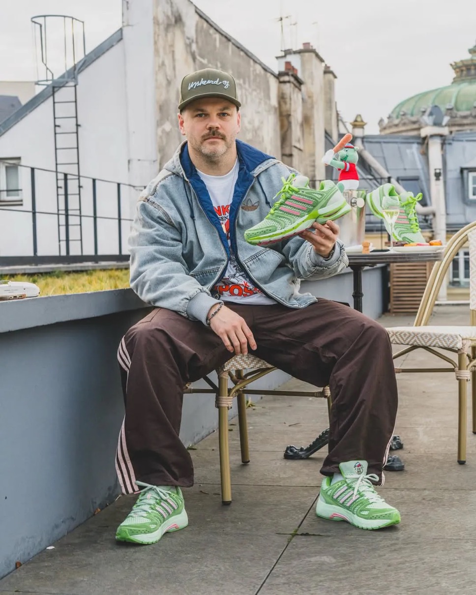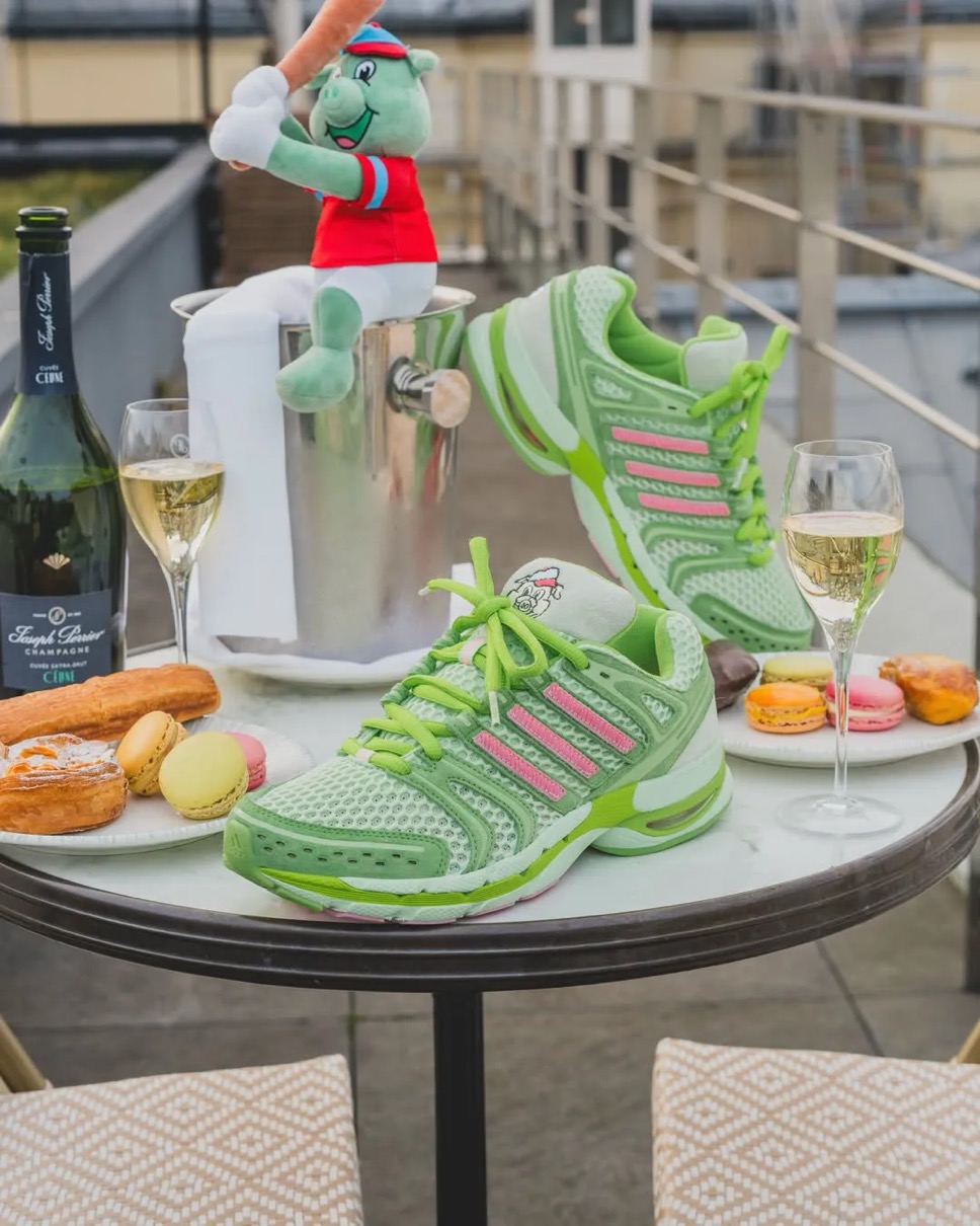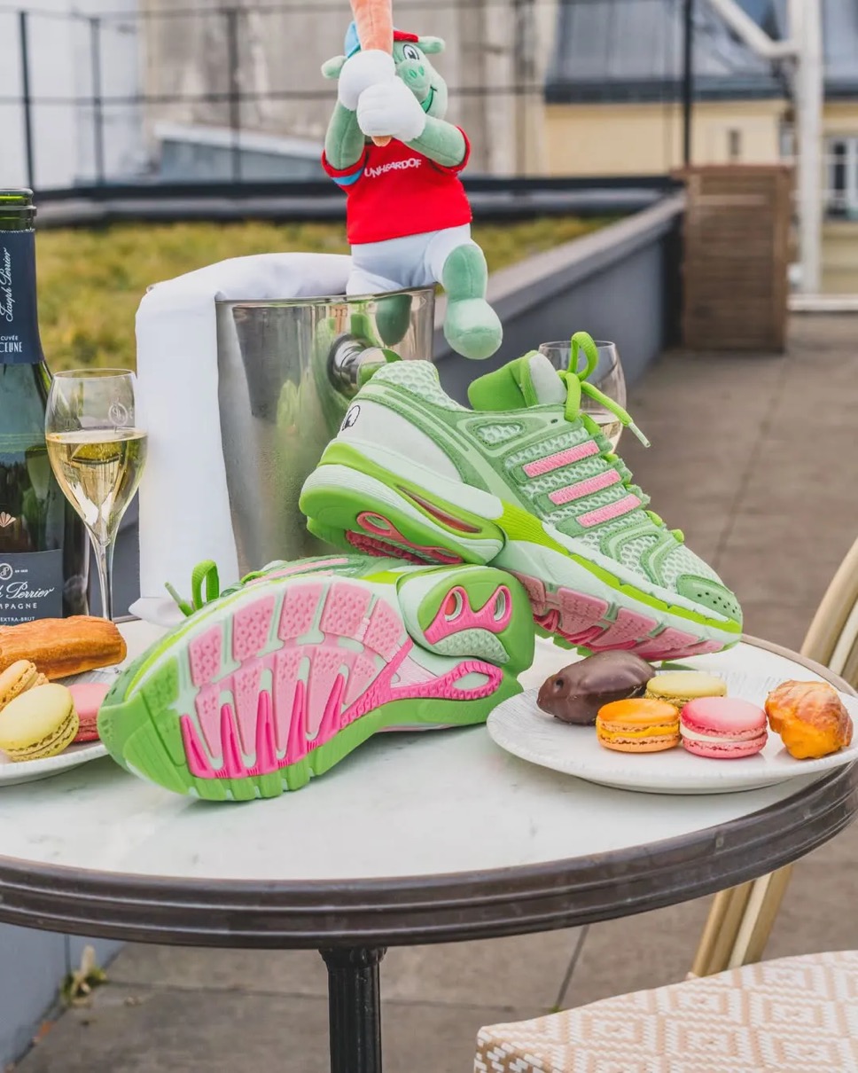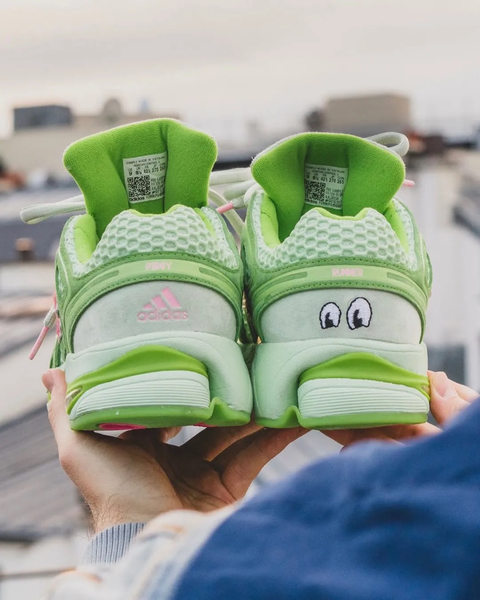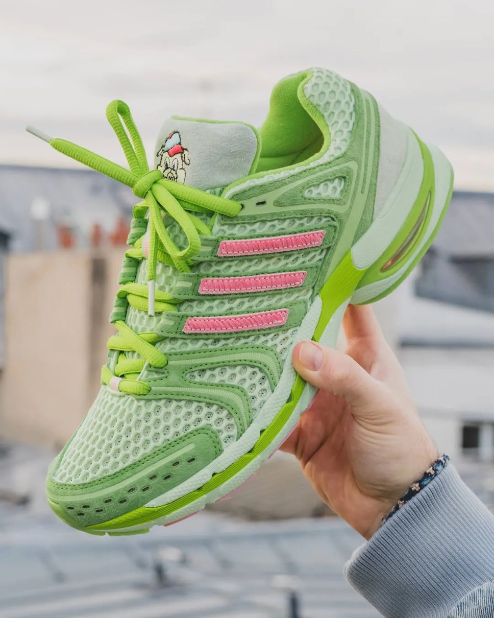 アンハードオブ x アディダス グリーンの新作コラボスニーカー『アディスターコントロール5 “ピギーランナー2.0”』が登場。