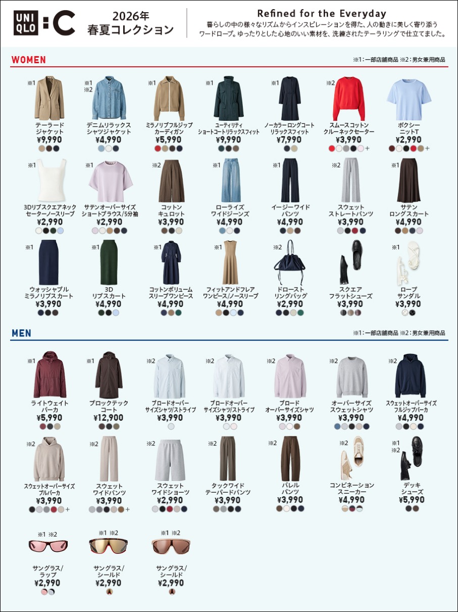 UNIQLO : C 2026年春夏コレクションは、国内2025年12月19日(金)より一部アイテムが先行発売。フルコレクションは2026年2月6日(金)よりリリース予定。新たな情報は判明し次第随時更新予定なのでお見逃しなく。