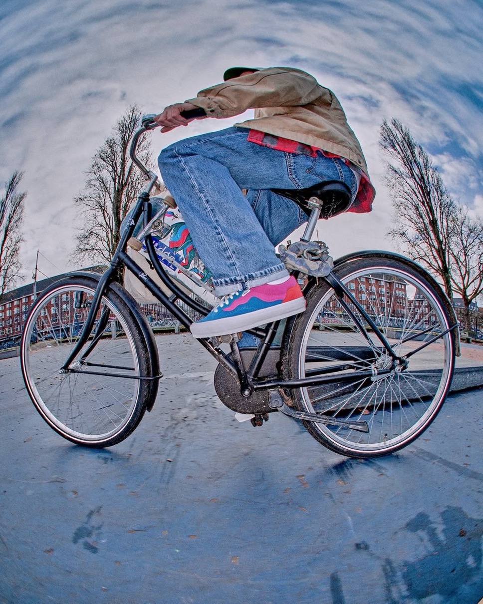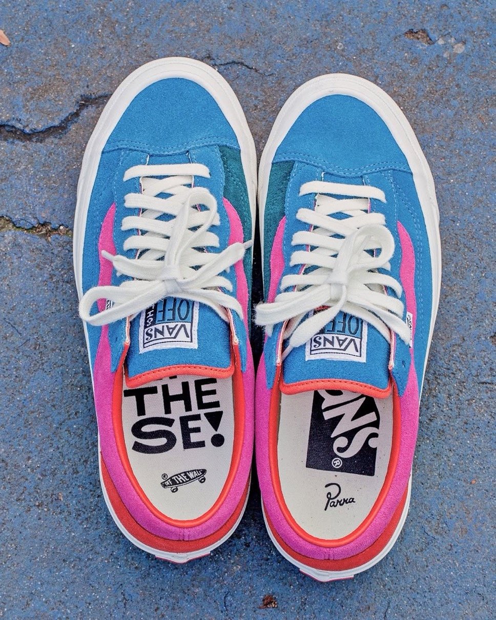 1990年代にオランダでプロスケートボーダーとしてVANSとスポンサー契約を結び、近年はアムステルダムを拠点にアーティストとして活動するピート・パラとのコラボレーションモデルが登場。サイドストライプを外したOLD SKOOLをベースに、Parra らしい鮮やかなカラーパレットと有機的でうねるような曲線を組み合わせ、プレミアムスエードのアッパーを纏ったクラシックな一足をフレッシュに仕上げている。