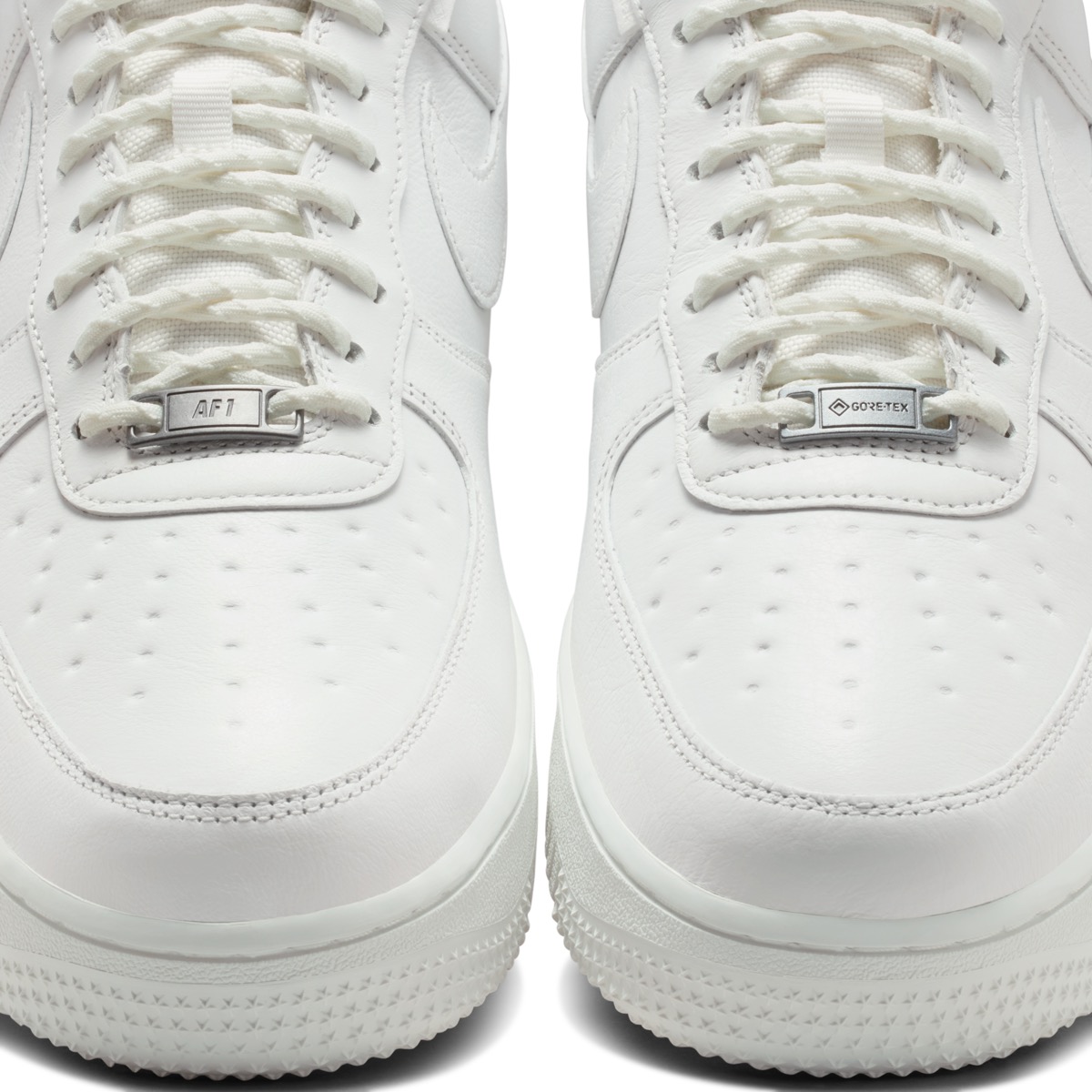アメリカ大統領専用飛行機『エアフォースワン』にちなんで命名され、1982年にナイキ エアを初めて搭載したバスケットボールシューズとして誕生した「Air Force 1(エアフォース1)」。この新作モデルでは、世界一の品質を誇るイタリアのソールメーカーVibram社(ヴィブラム)が開発したアウトソールを搭載。さらに、アッパー裏地に防水透湿性素材(ぼうすいとうしつせいそざい)である「Gore-Tex®︎(ゴアテックス)」ファブリクスを採用した全天候型シューズとなっており、トゥボックスのベンチレーションホールなどは塞ぐことで、雨が染み込まないよう、防水性の高いディテールが施されている。カラーはホワイトやオリーブ、ピンクなどが順次展開されていく。