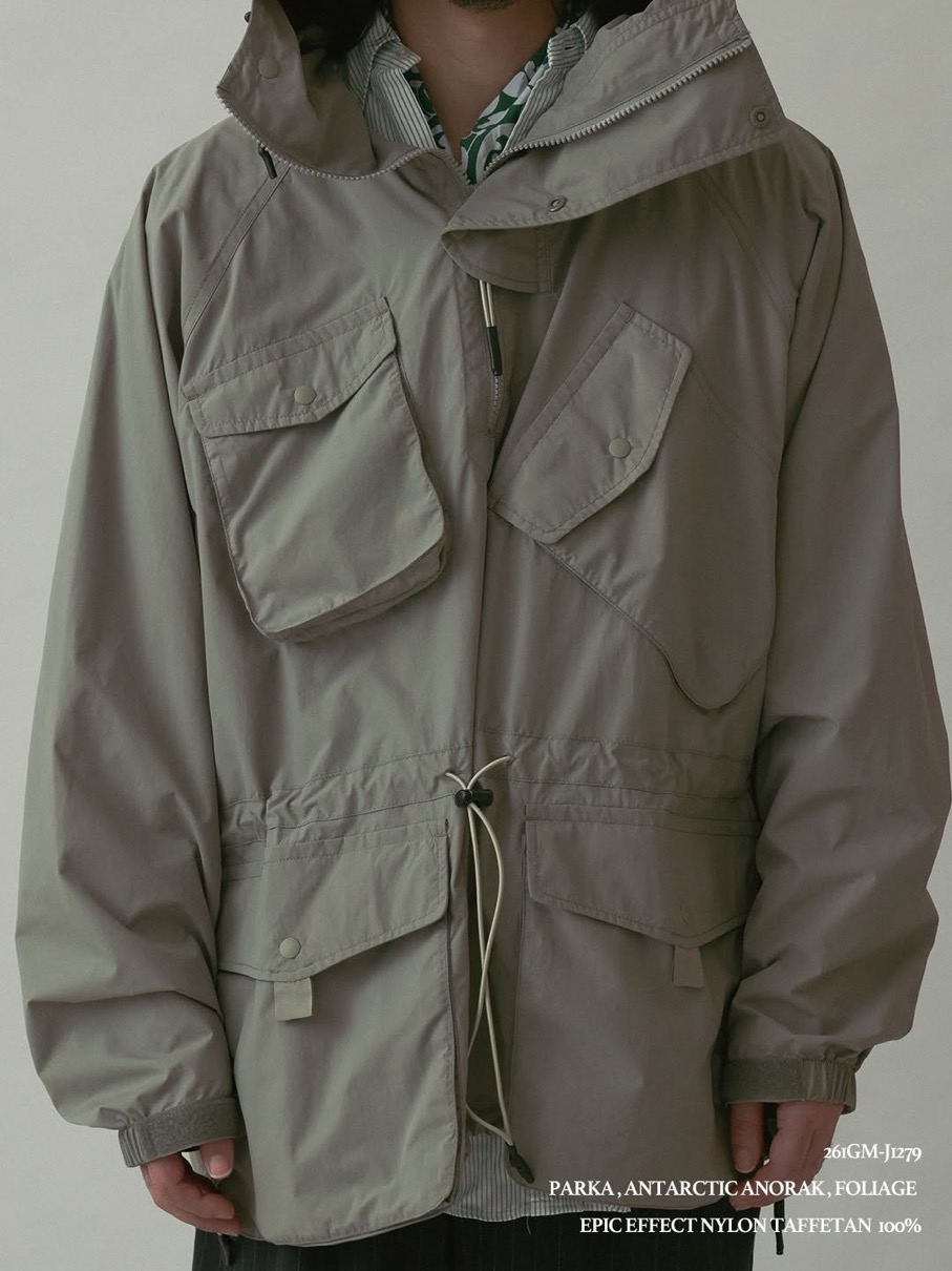50回の洗濯試験をクリアする高い撥水性を備える。南極探検隊のアノラックをベースに、テック仕様へアップデート。