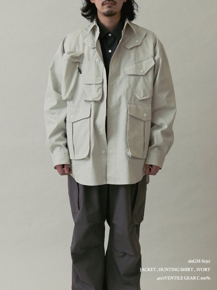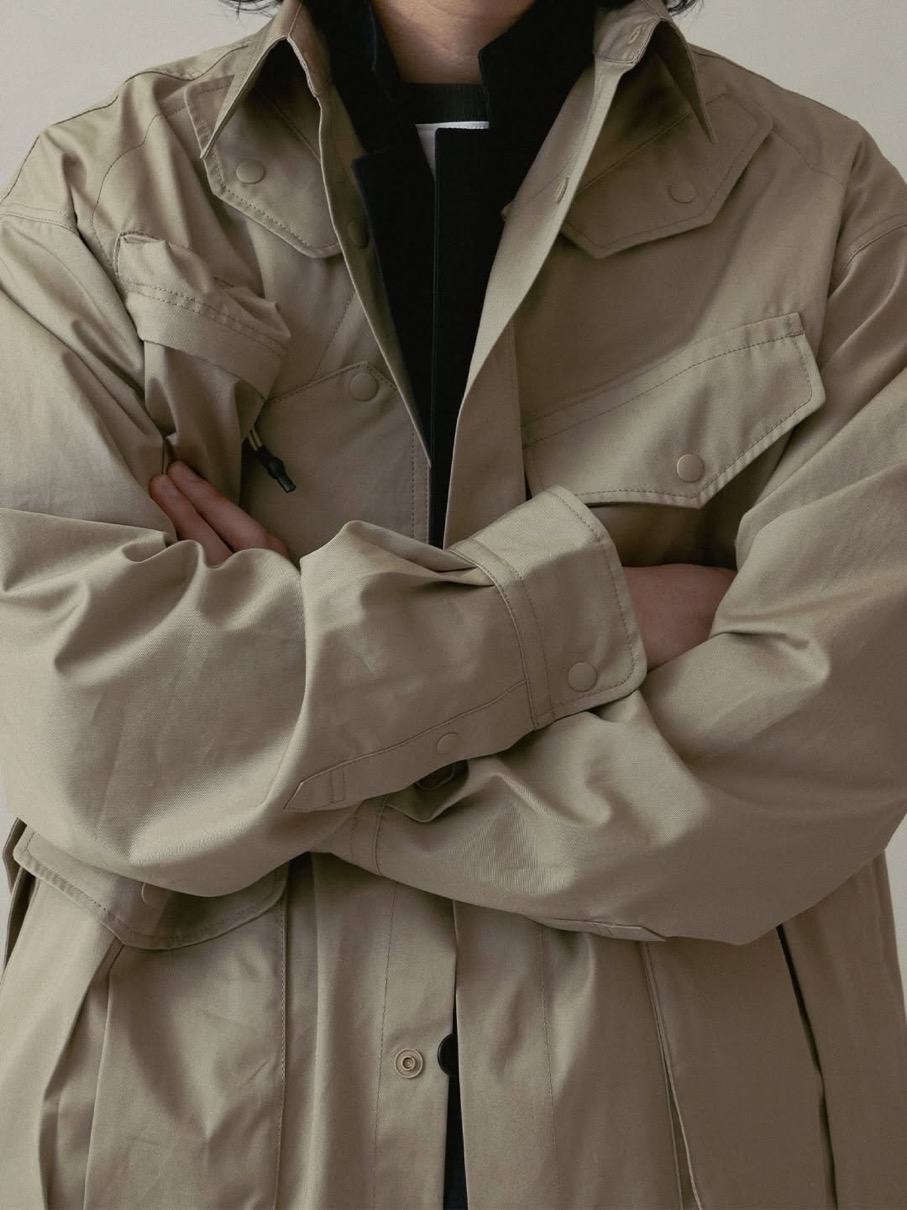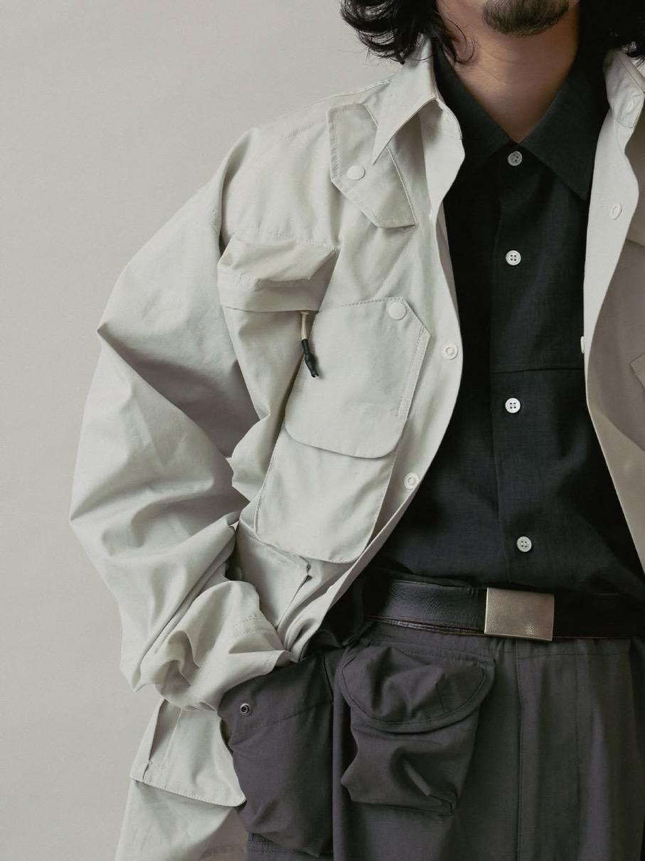 ハンティングジャケットやフライトベストに着想を得た、9つの多彩なポケットを備えるシャツジャケット。