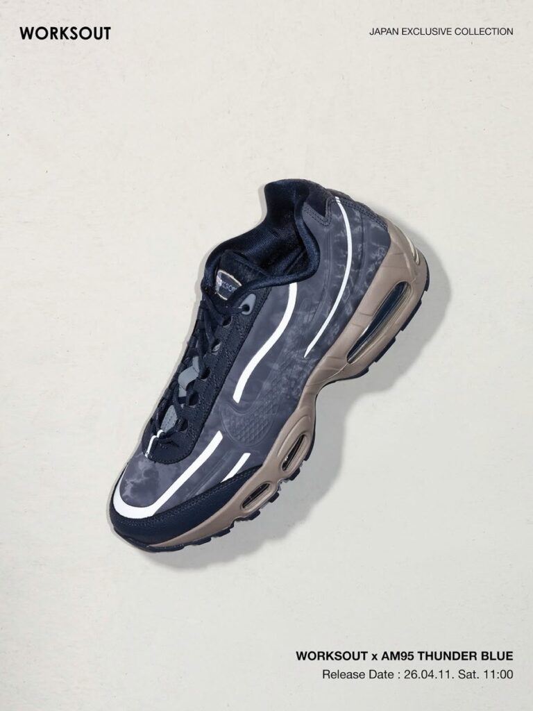 2003年に設立された韓国・ソウルのセレクトショップ『WORKSOUT(ワークスアウト)』と「Nike(ナイキ)」によるコラボスニーカー Air Max 95 SP “Thunder Blue”が、現地時間2025年9月6日より韓国・ソウルで限定発売。国内では日本初となる青山路面店『WORKSOUT AOYAMA』のオープン日である2026年4月11日(土)に発売される。