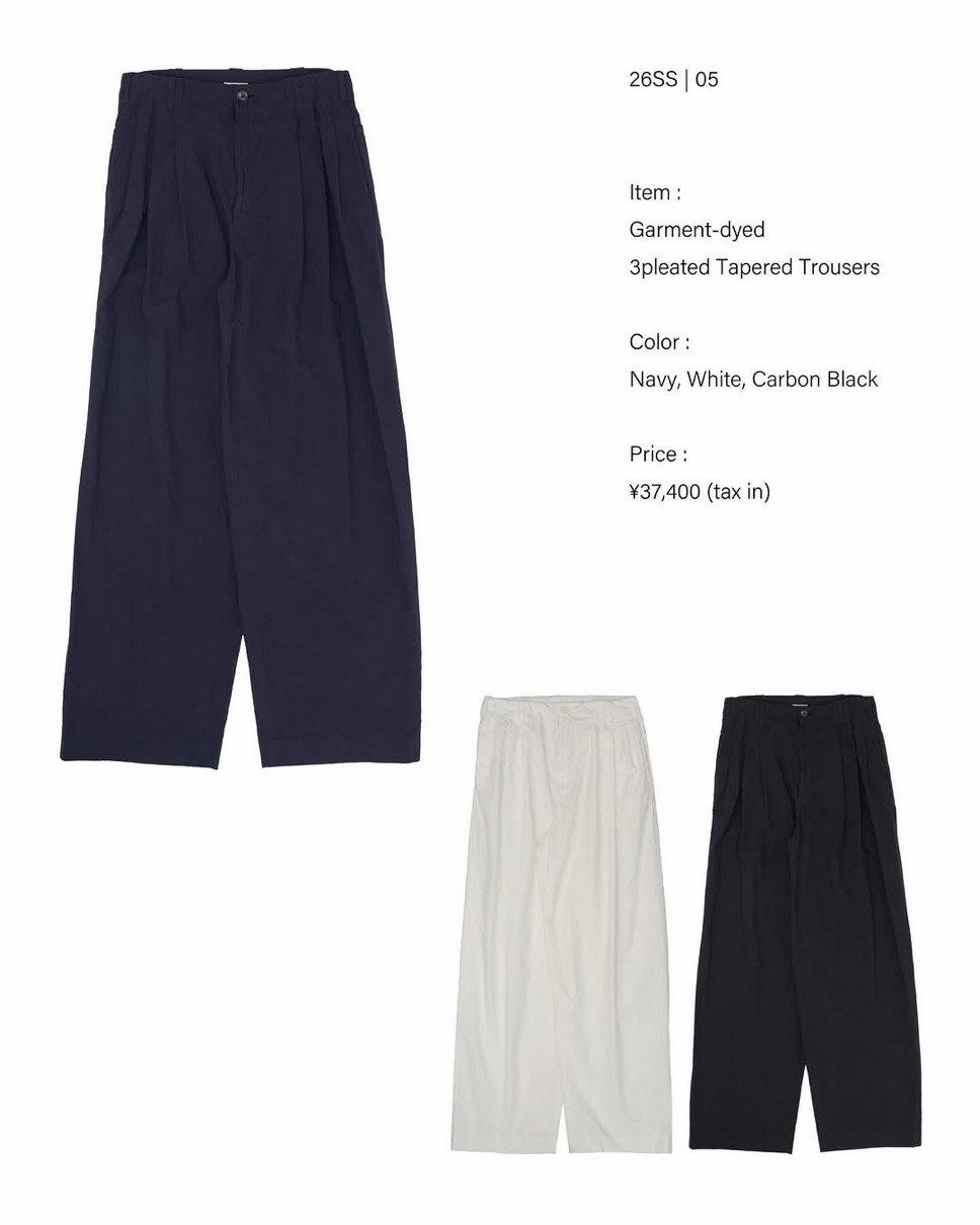 Cotton Typewriter Garment-dyed 3pleated Tapered Trousers
